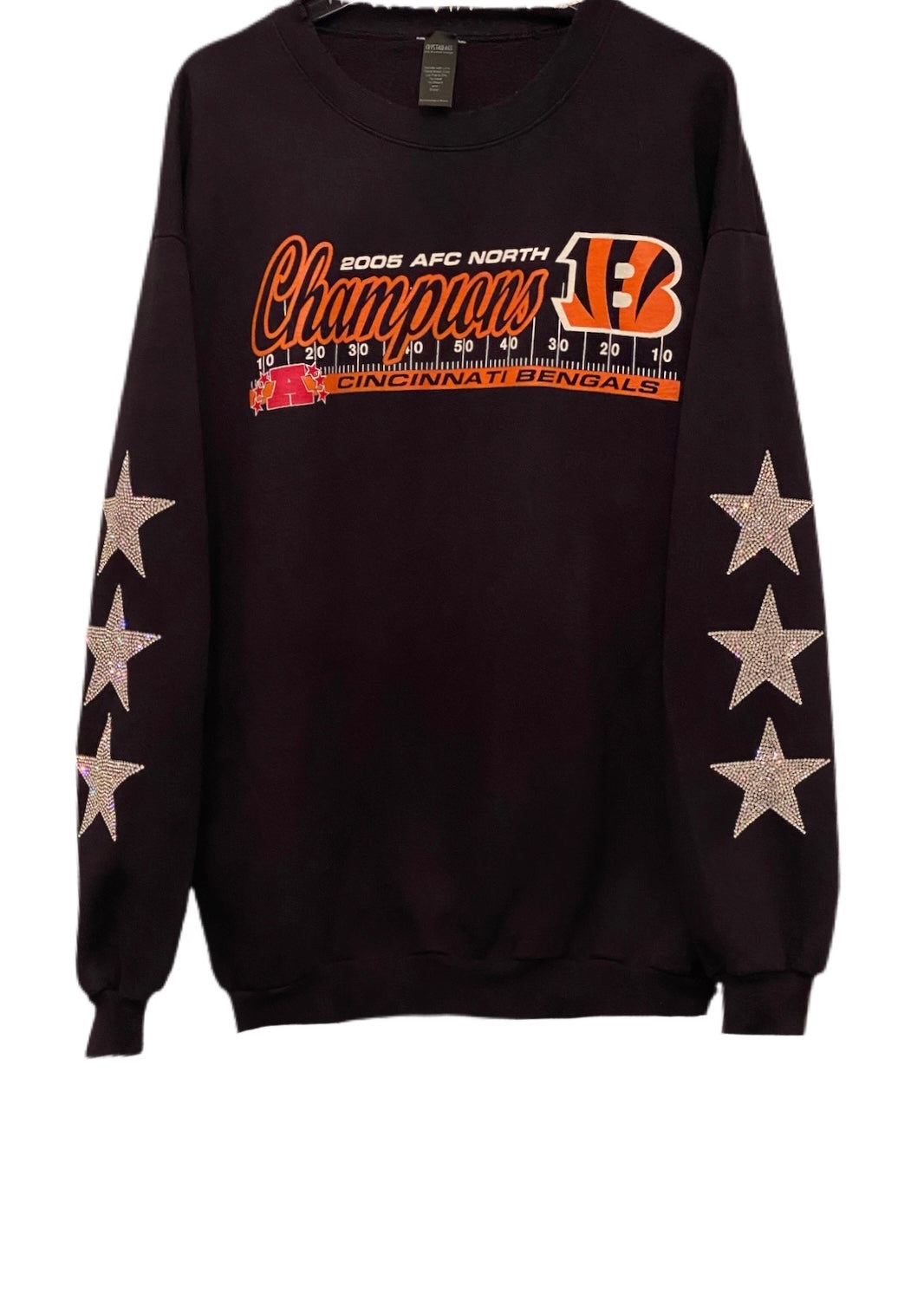 Cincinnati Bengals, Football One of a KIND Vintage Sweatshirt with Three Crystal Star Design