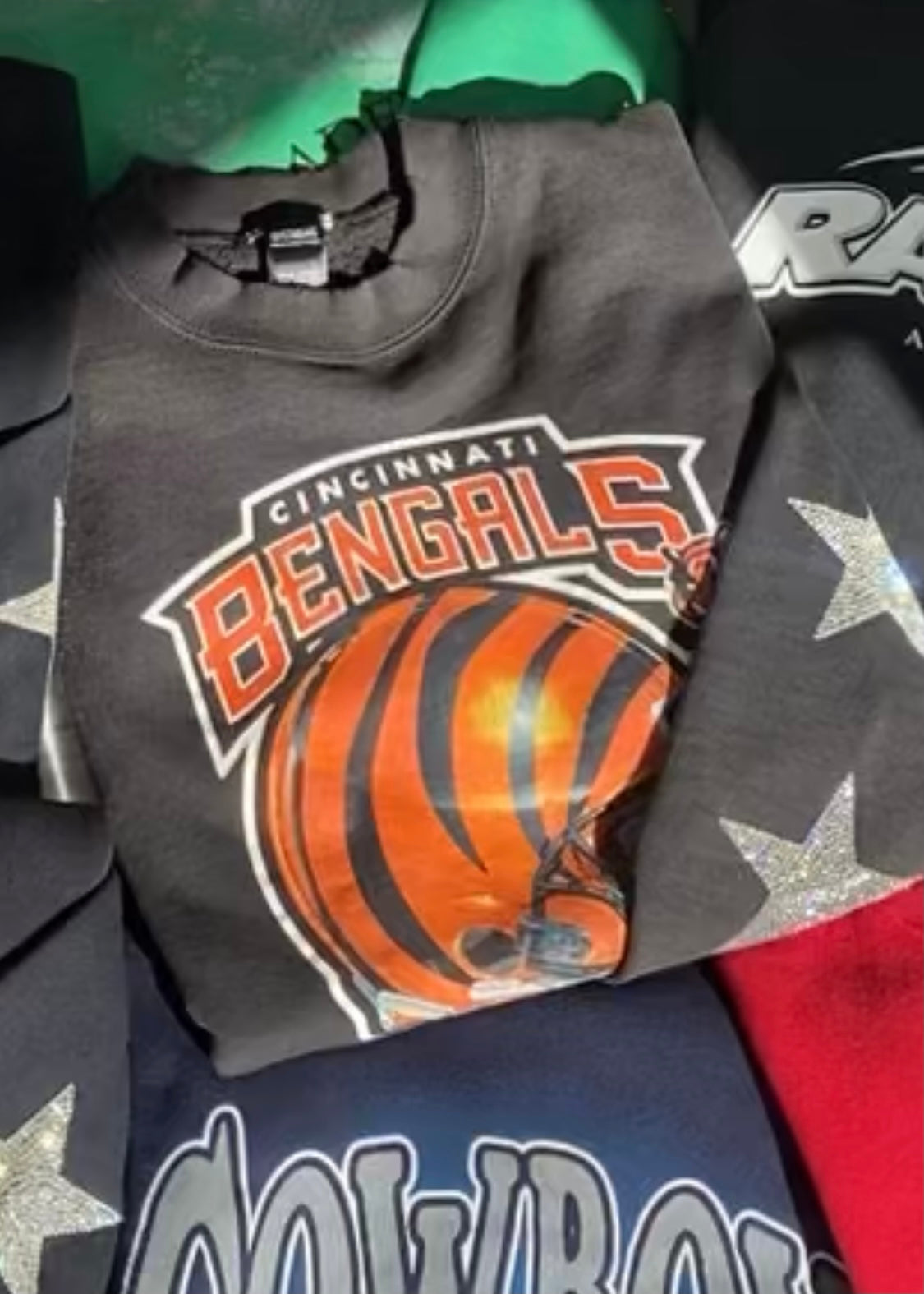 Cincinnati Bengals, Football One of a KIND Vintage Sweatshirt with Crystal Star Design