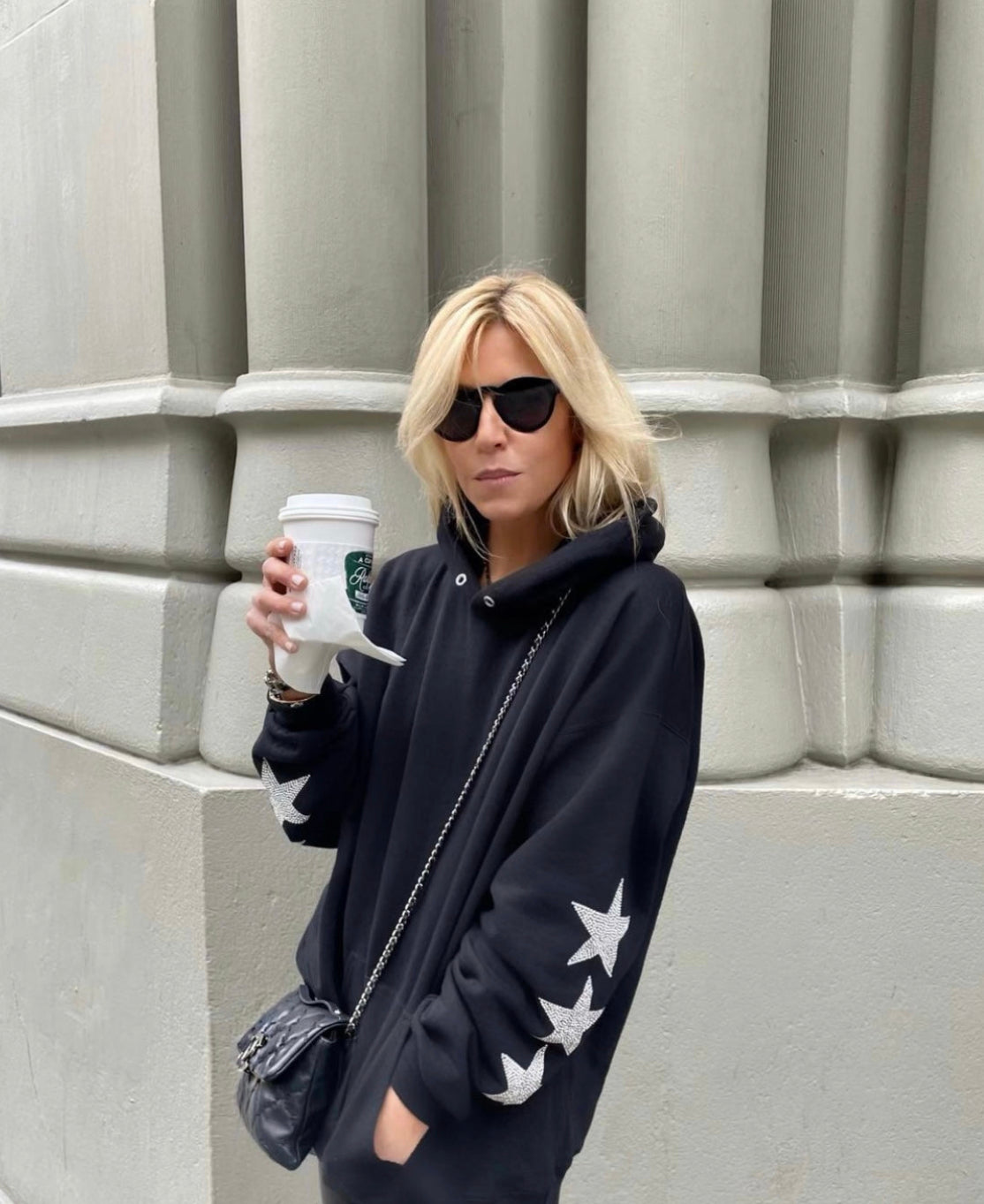 CrystalRags Oversize Black Hoodie with Three Crystal Star Design