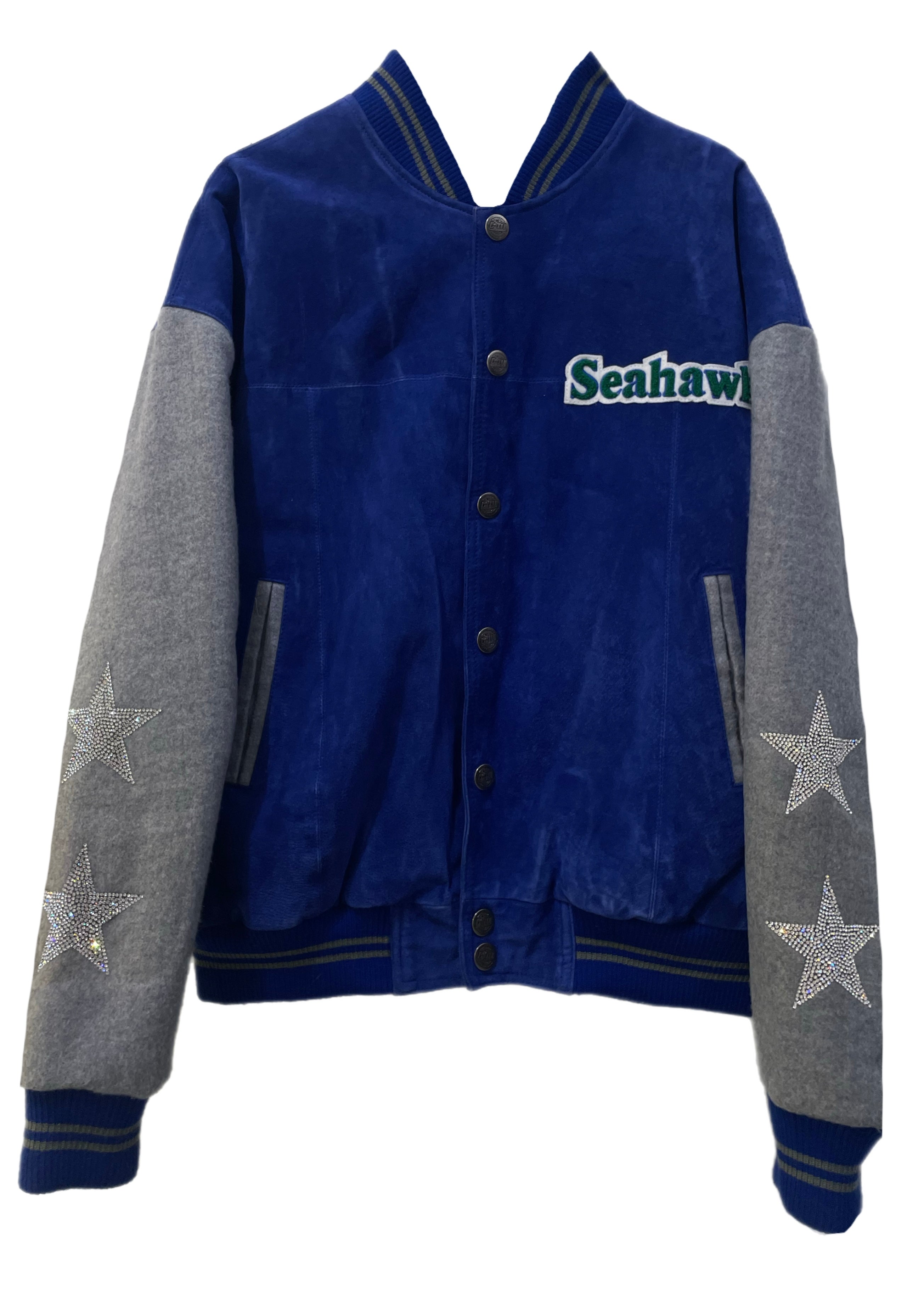 Seattle Seahawks, Football “Super Rare Fine” One of a KIND Vintage Jacket with Crystal Star Design With Custom Name & Number                                                  - Soft, frayed & oversized depending on person