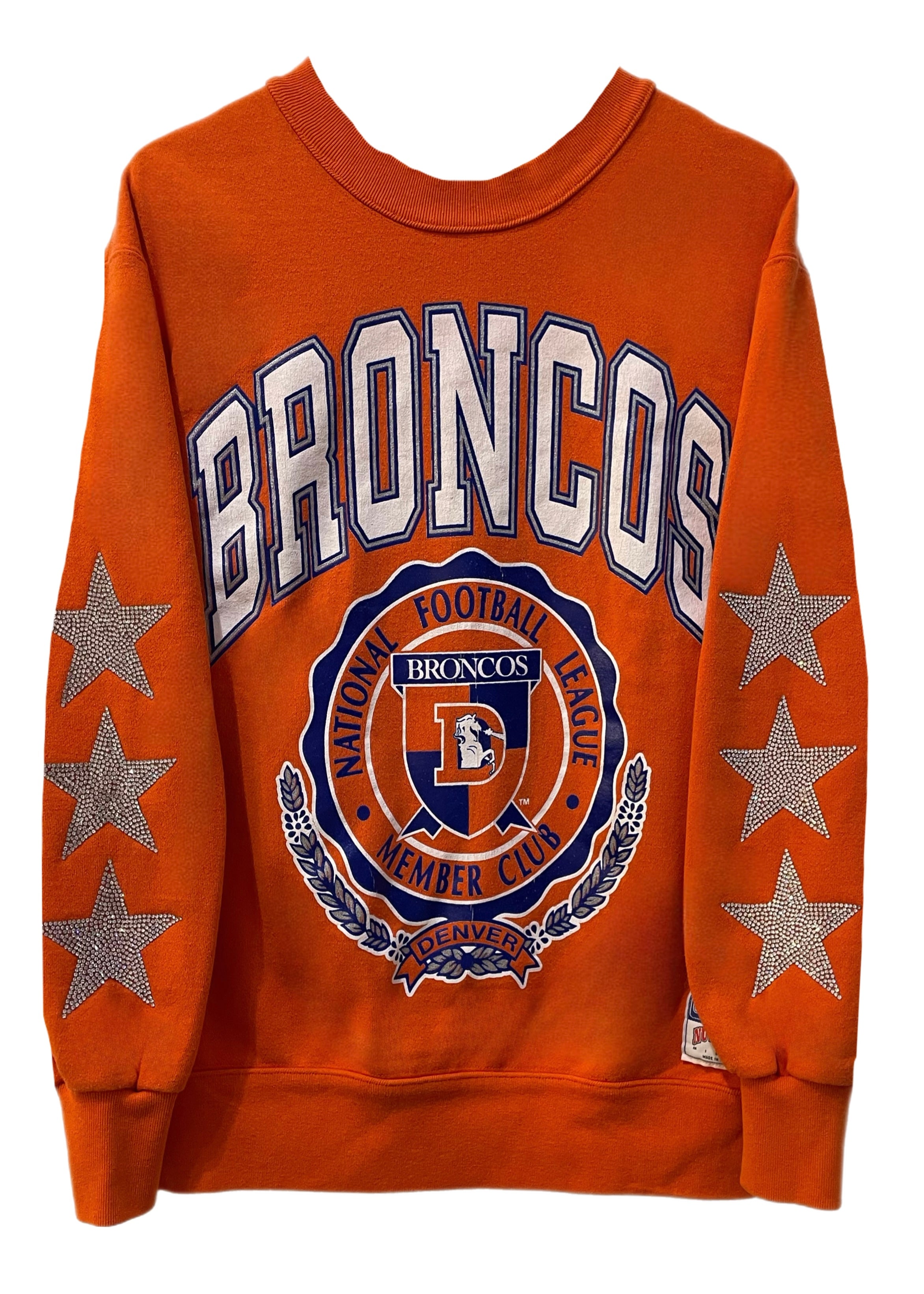 Denver Broncos, Football One of a KIND Vintage Sweatshirt with Three Crystal Star Design
