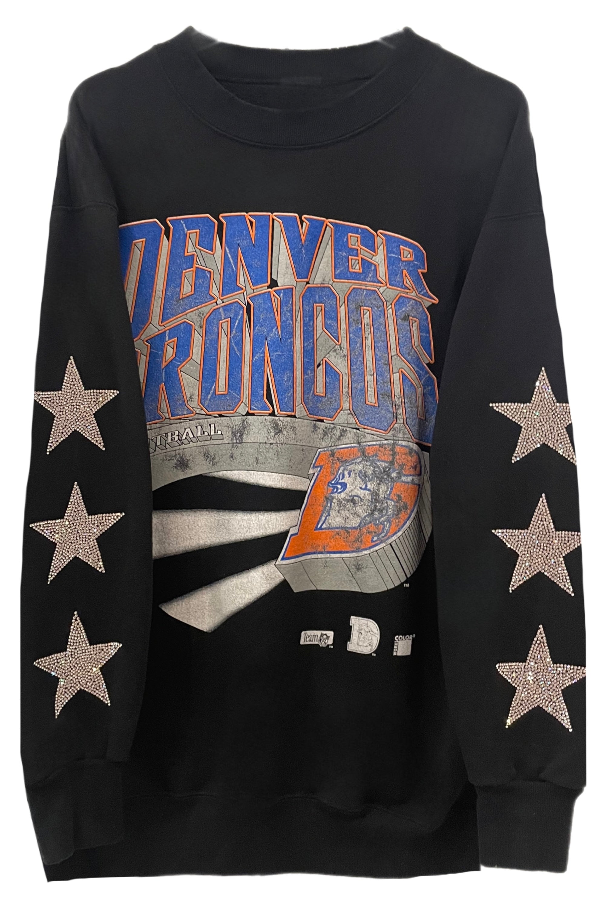 Denver Broncos, Football One of a KIND Vintage “Rare Find” Sweatshirt with Three Crystal Star Design