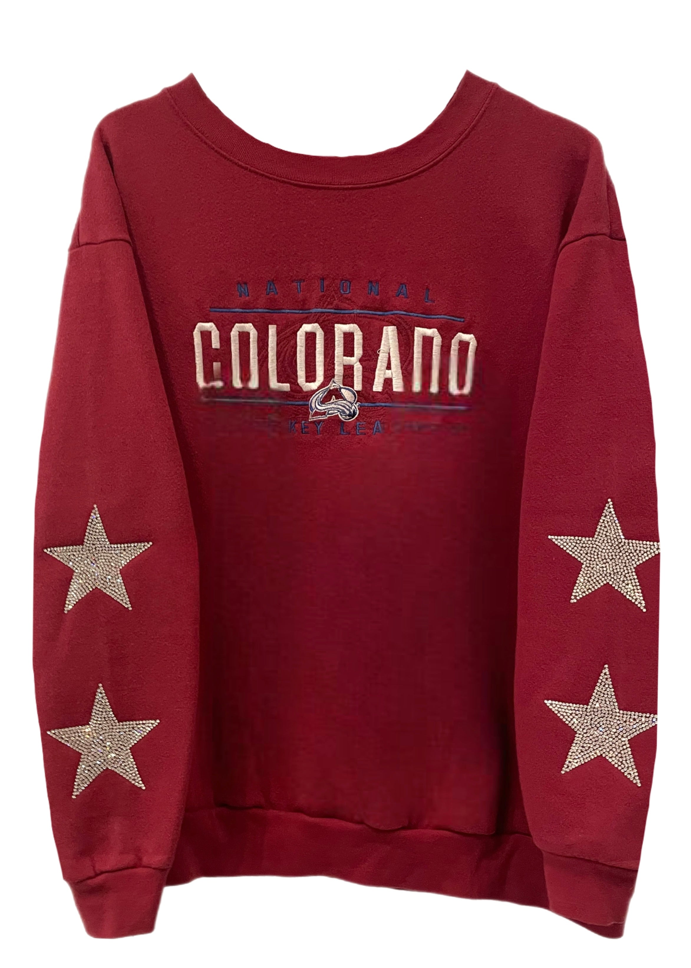 Denver Colorado Avalanche, Hockey One of a KIND Vintage Sweatshirt with Crystal Star Design