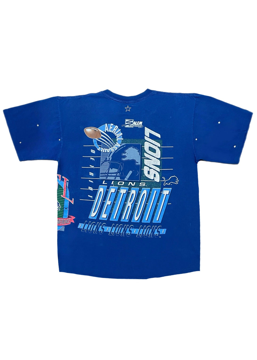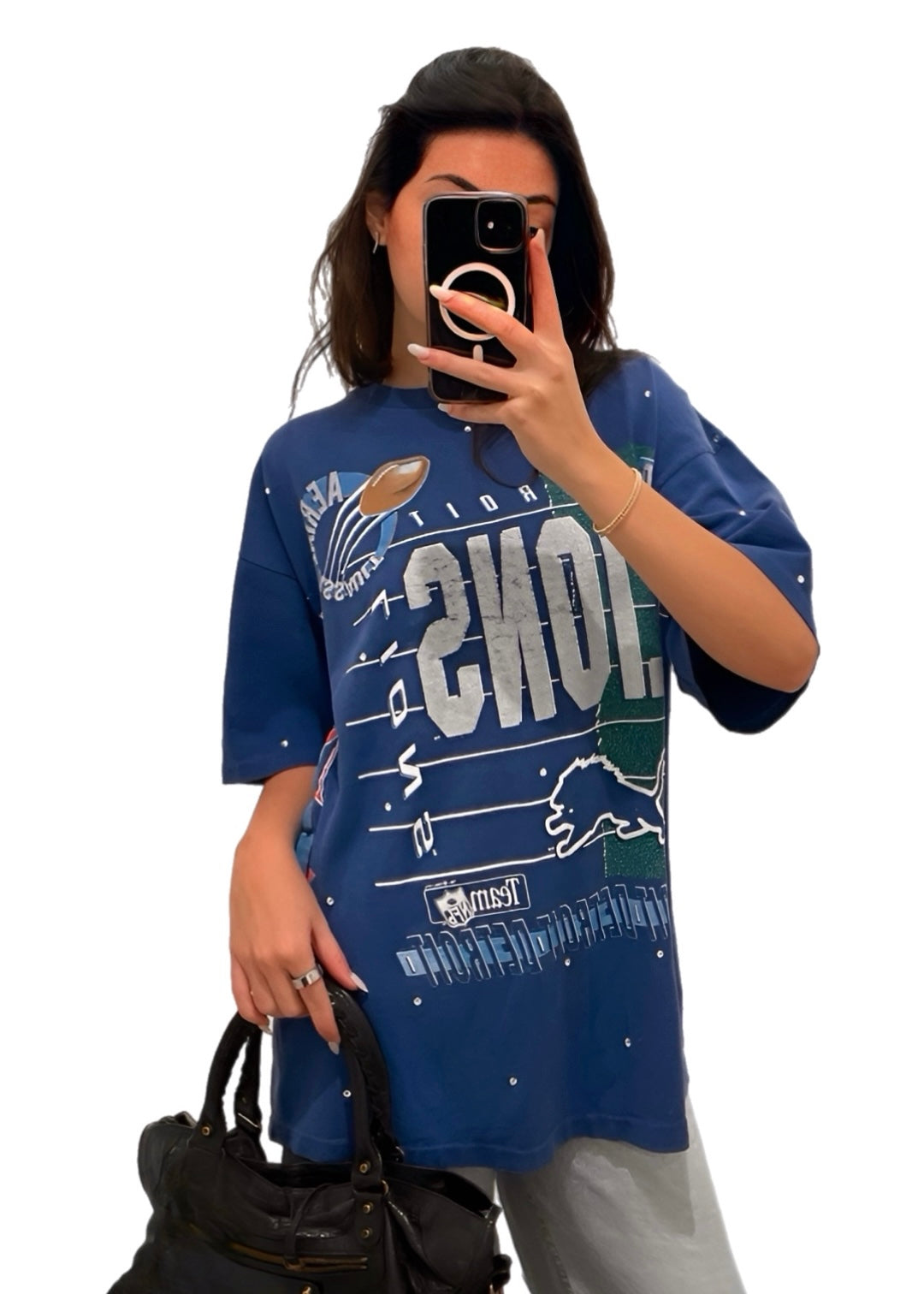 Detroit Lions, Football One of a KIND Vintage “Rare Find, Collectors Piece Aerial Assault” Tee with All Over Crystal Design                                                                                                                                                           - Soft, frayed & oversized depending on the person