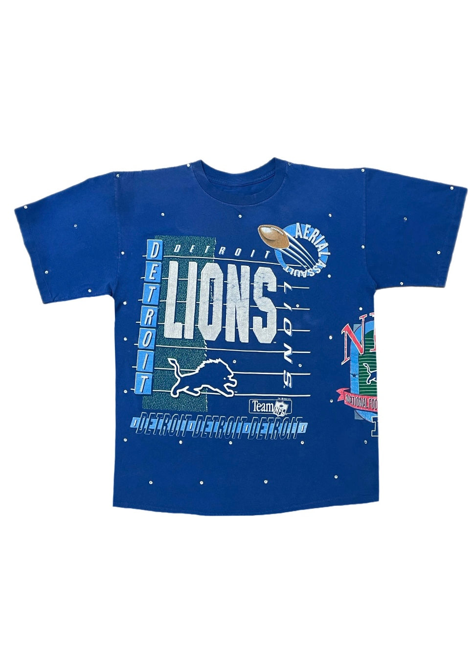 Detroit Lions, Football One of a KIND Vintage “Rare Find, Collectors Piece Aerial Assault” Tee with All Over Crystal Design