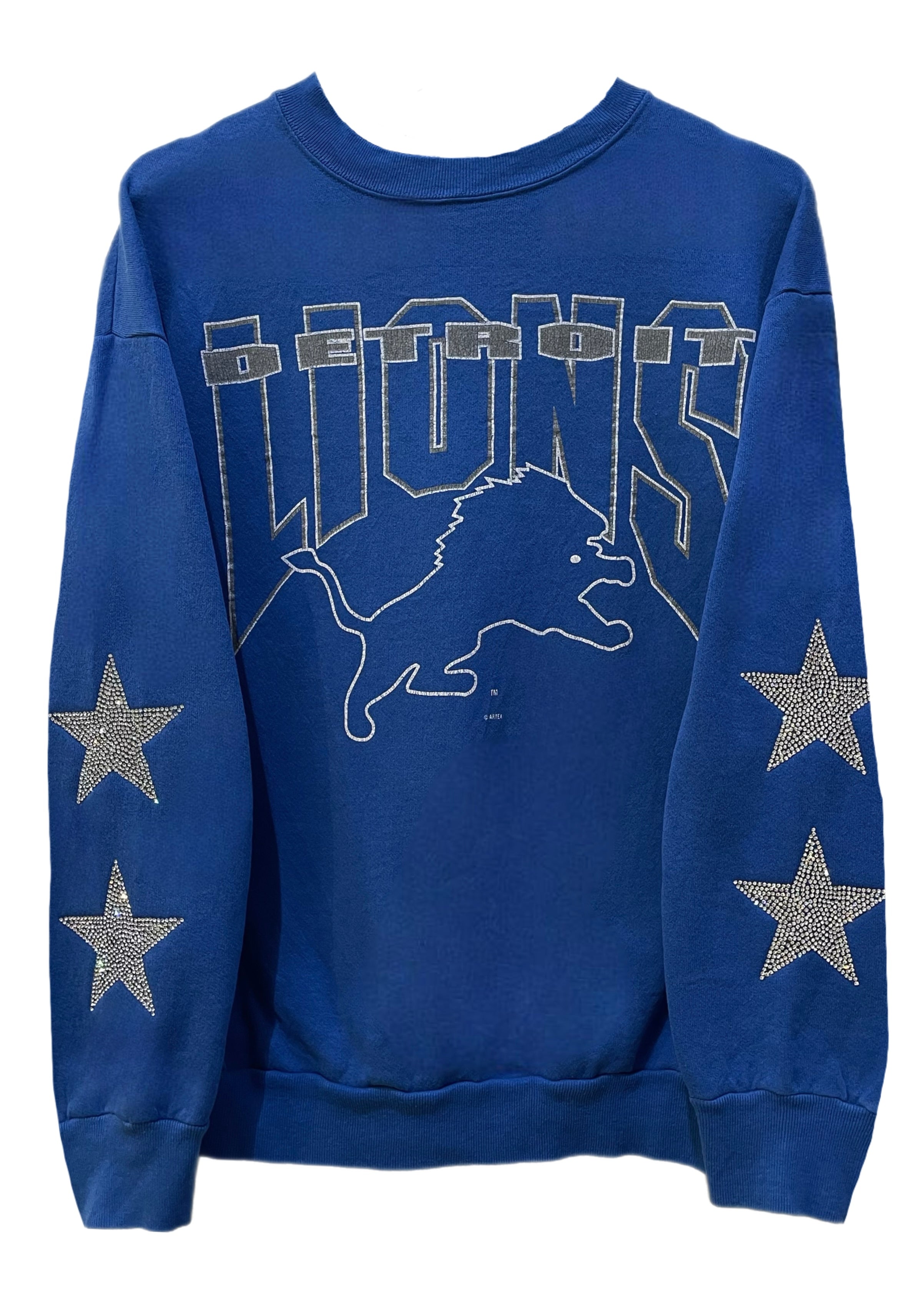 Detroit Lions, Football One of a KIND Vintage Sweatshirt with Crystal Star Design