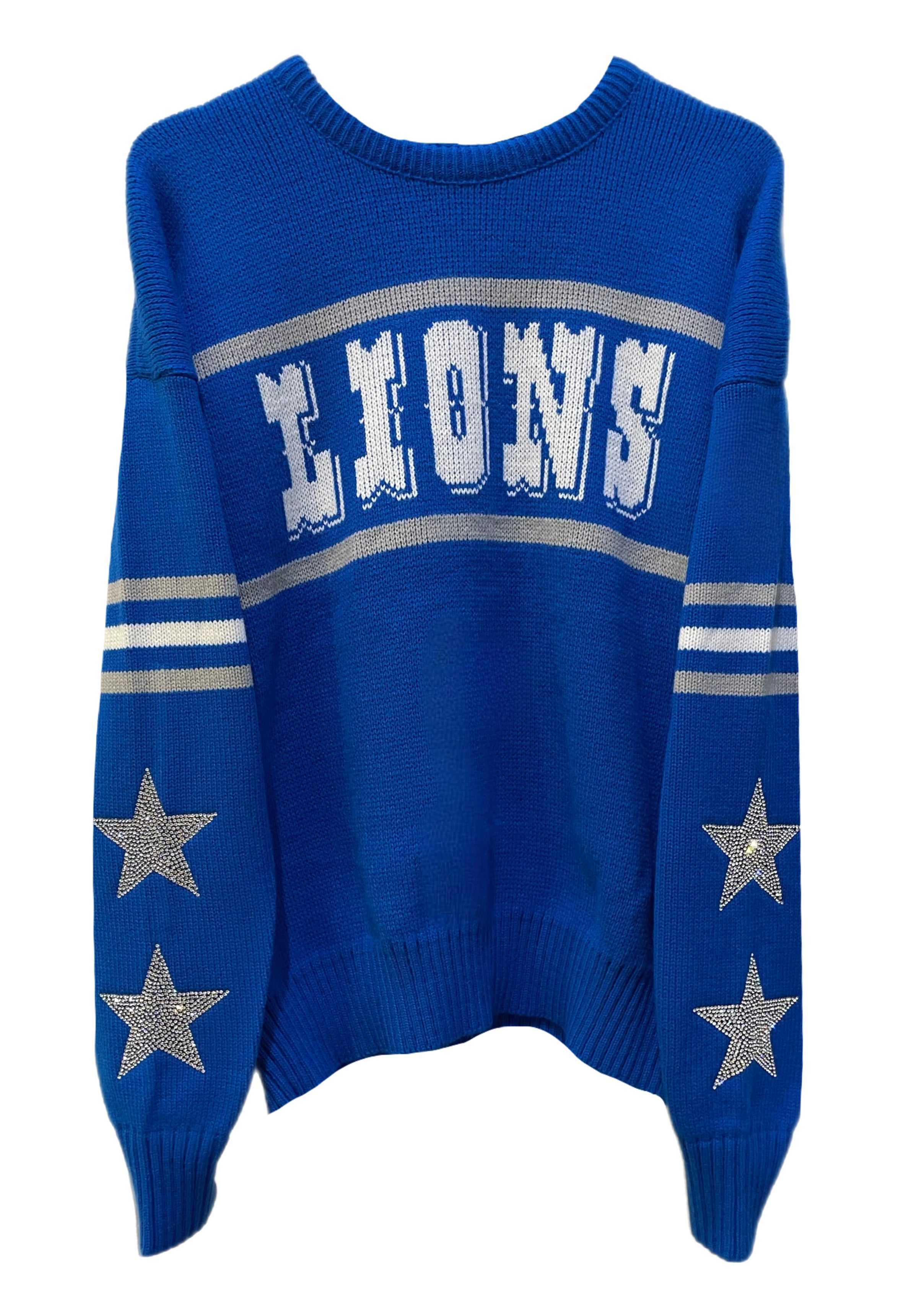 Detroit Lions, Football One of a KIND “Rare Find” Vintage Knit Sweater with Crystal Star Design