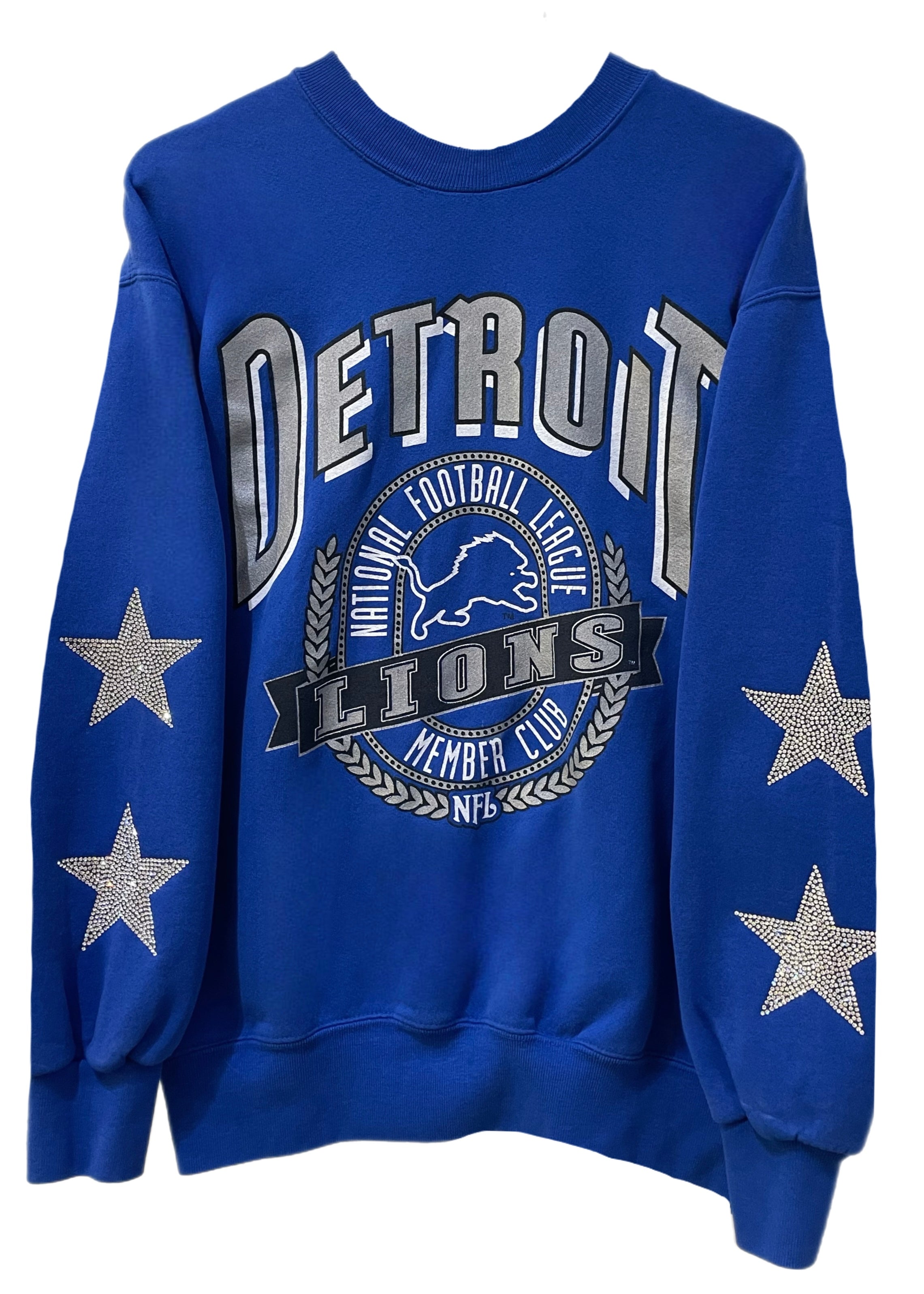 Detroit Lions, Football One of a KIND Vintage Sweatshirt with Crystal Star Design