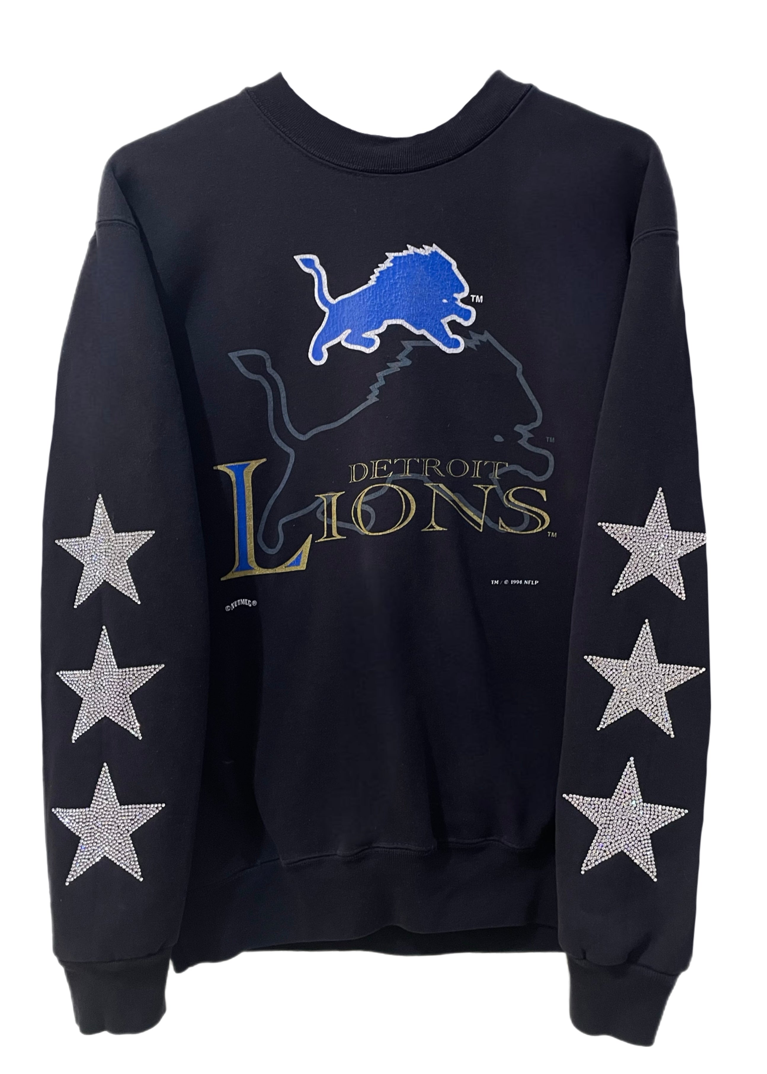 Detroit, Lions, Football One of a KIND Vintage “Rate Find” Sweatshirt with Three Crystal Star Design.