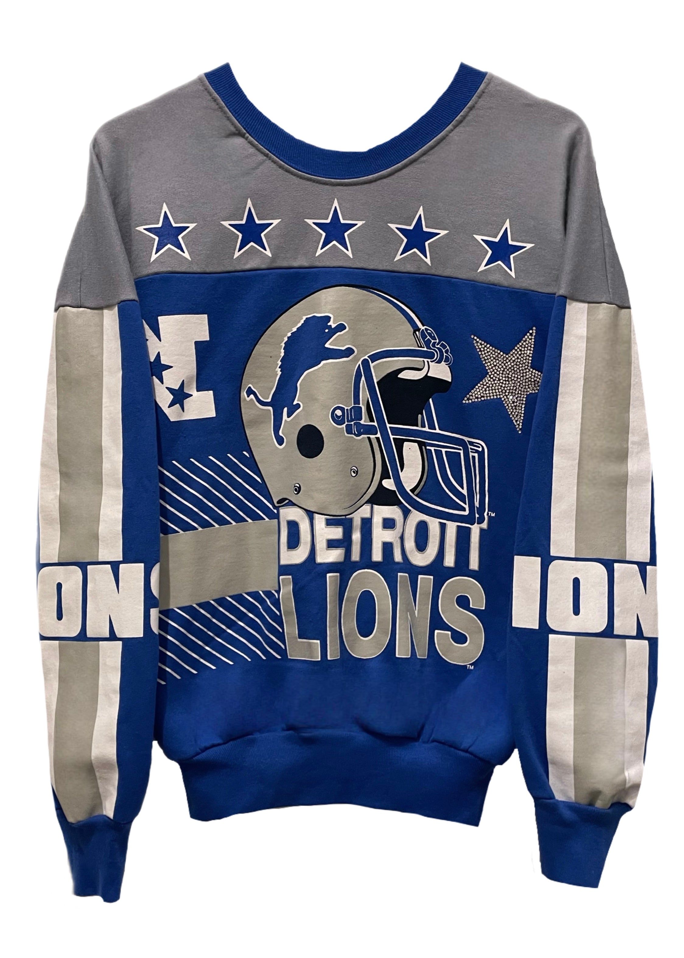 Detroit Lions, Football One of a KIND Vintage Sweatshirt “Collectors Piece” with Crystal Star Design