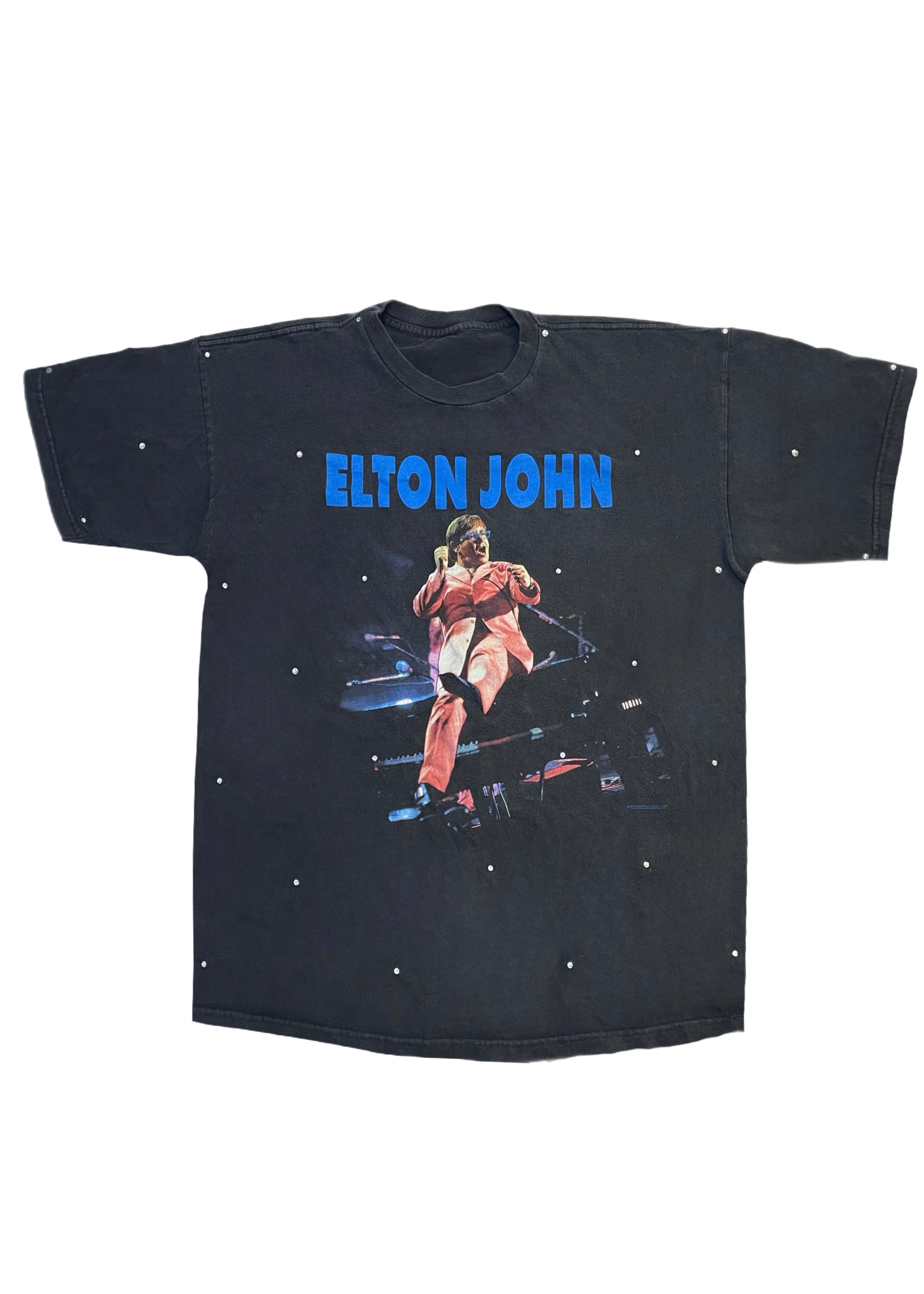 Elton John, Musician “Rare Find” One of a KIND Vintage Tee with Overall Crystal Design