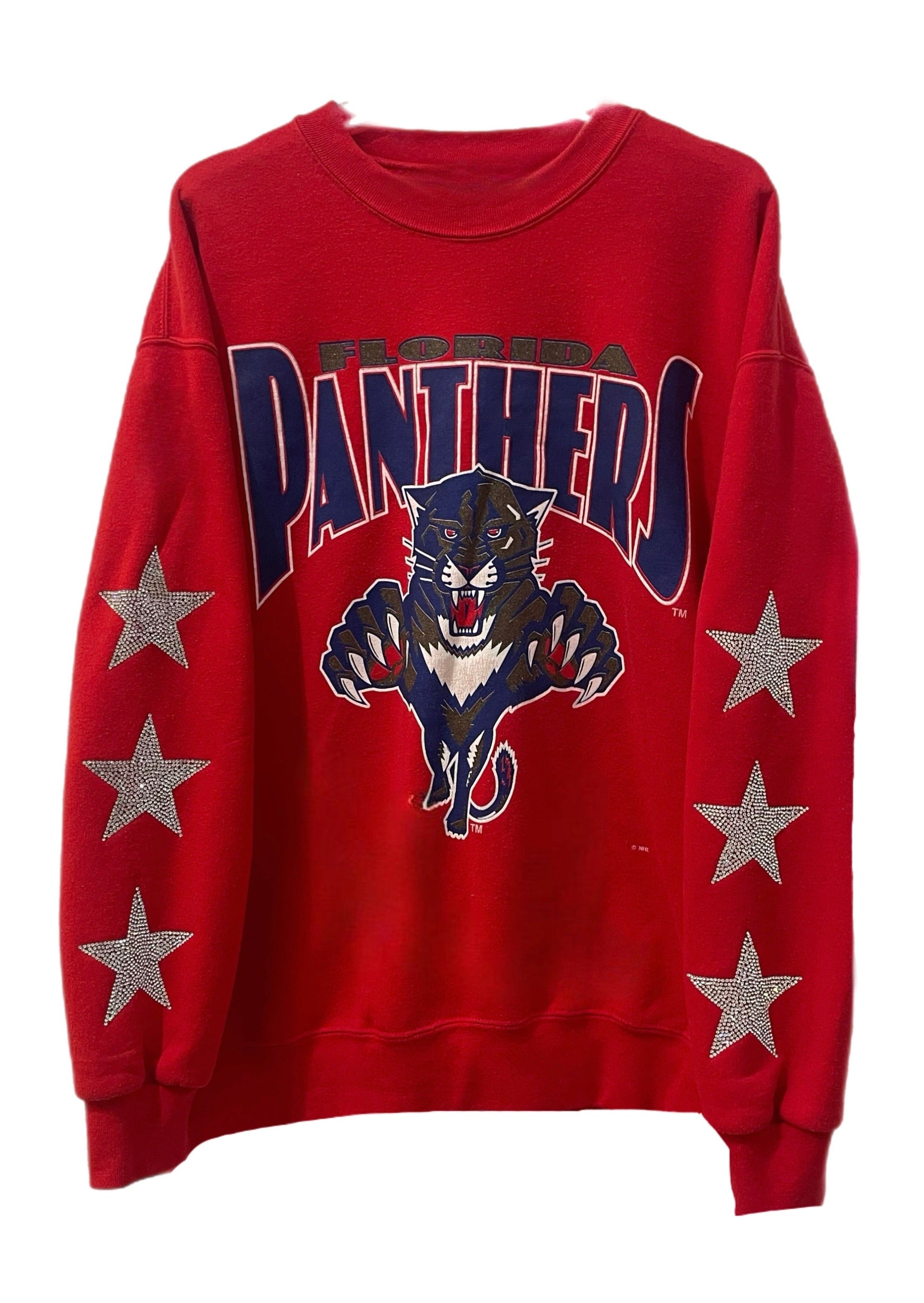 Florida Panthers, Hockey One of a KIND Vintage Sweatshirt with Three Crystal Star Design