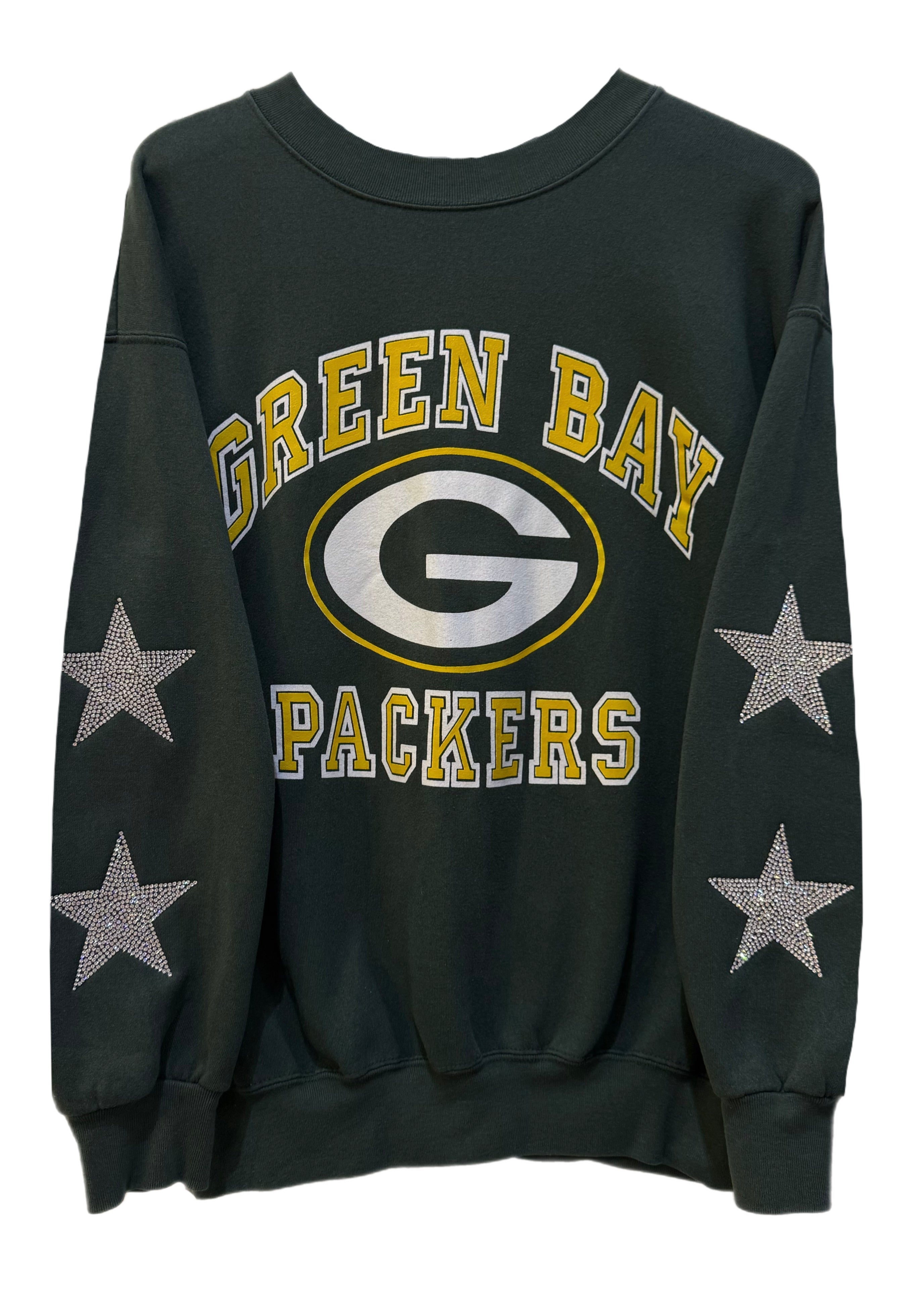 Green Bay Packers, Football One of a KIND Vintage Sweatshirt with Crystal Star Design With Custom Name & Number