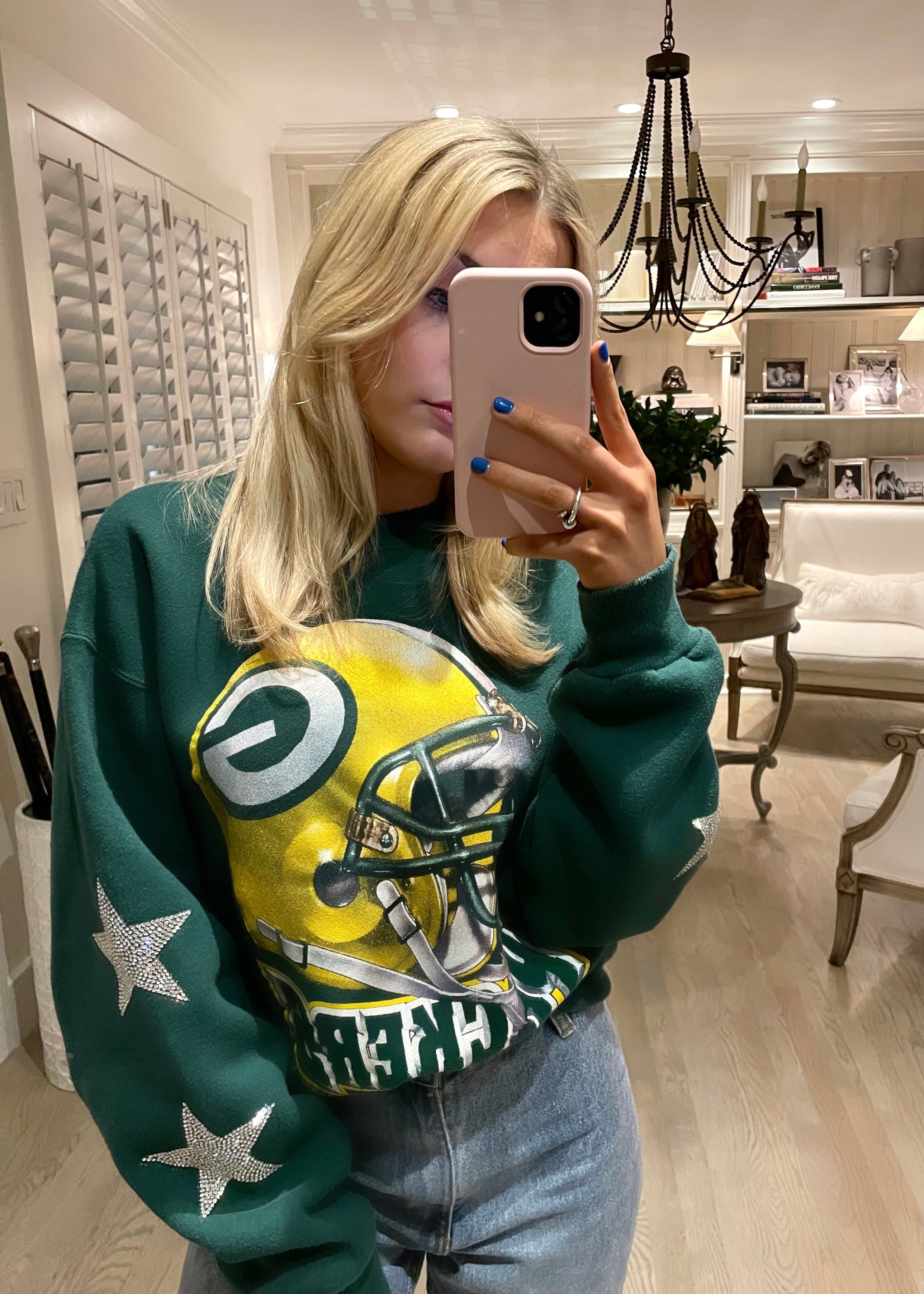 Green Bay Packers, Football One of a KIND Vintage Sweatshirt with Crystal Star Design