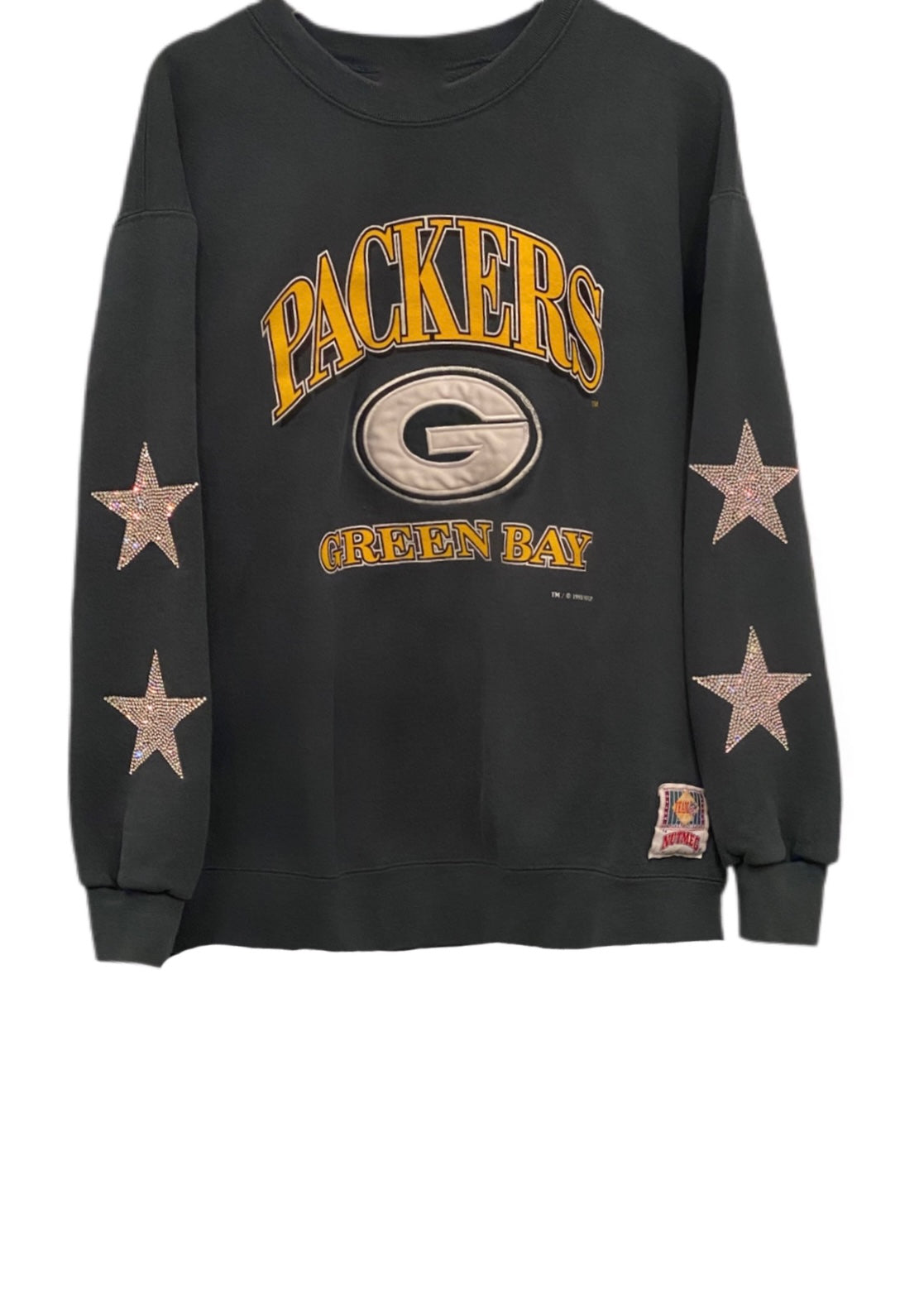 Green Bay Packers, Football One of a KIND Vintage Sweatshirt with Crystal Star Design