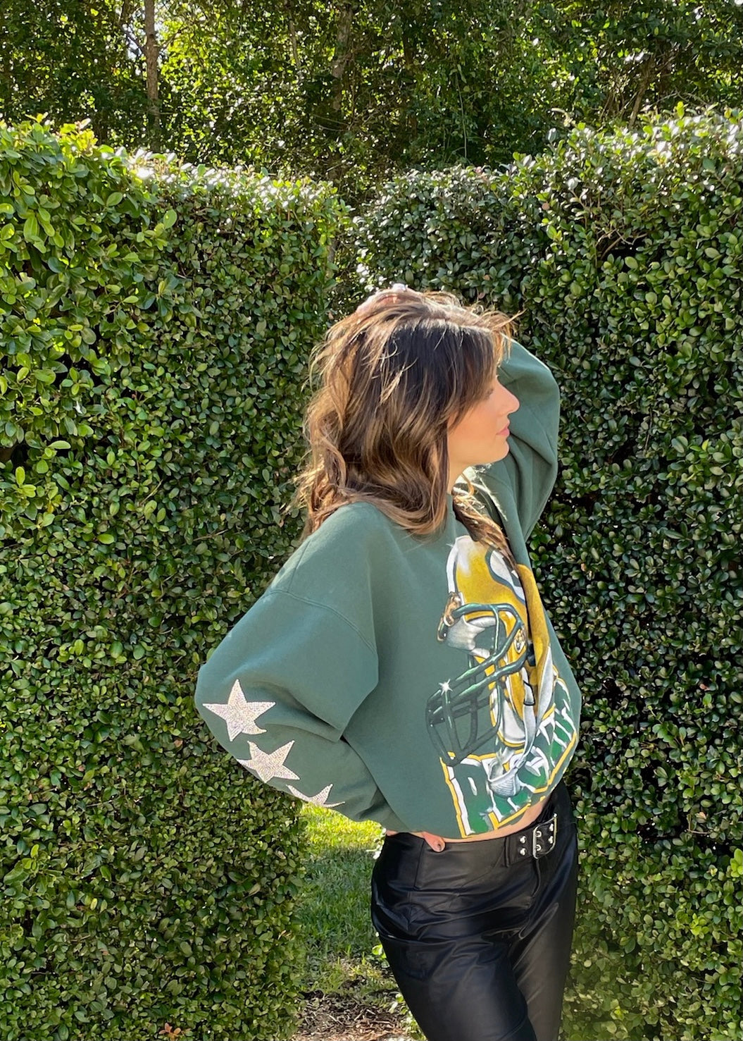 Green Bay Packers, Football One of a KIND Vintage Sweatshirt with Three Crystal Star Design