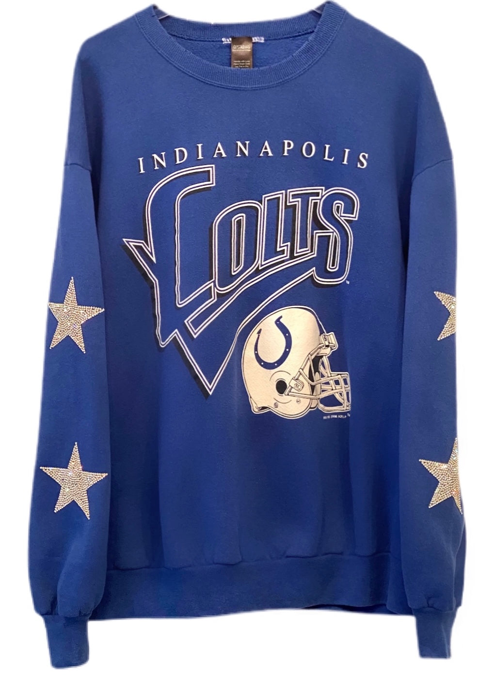 Indianapolis Colts, Football One of a KIND Vintage Sweatshirt with Crystal Star Design
