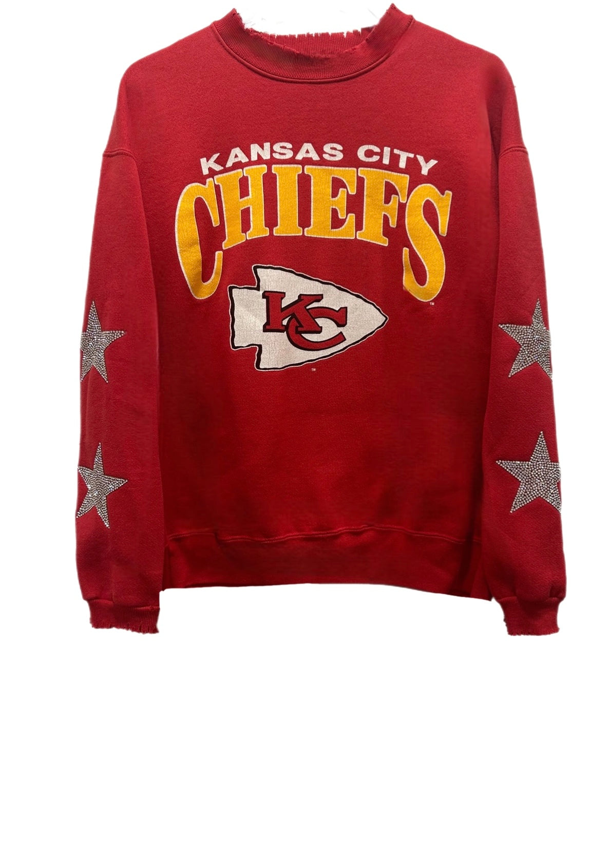 Kansas City Chiefs, Football One of a KIND Vintage Sweatshirt with Crystal Star Design