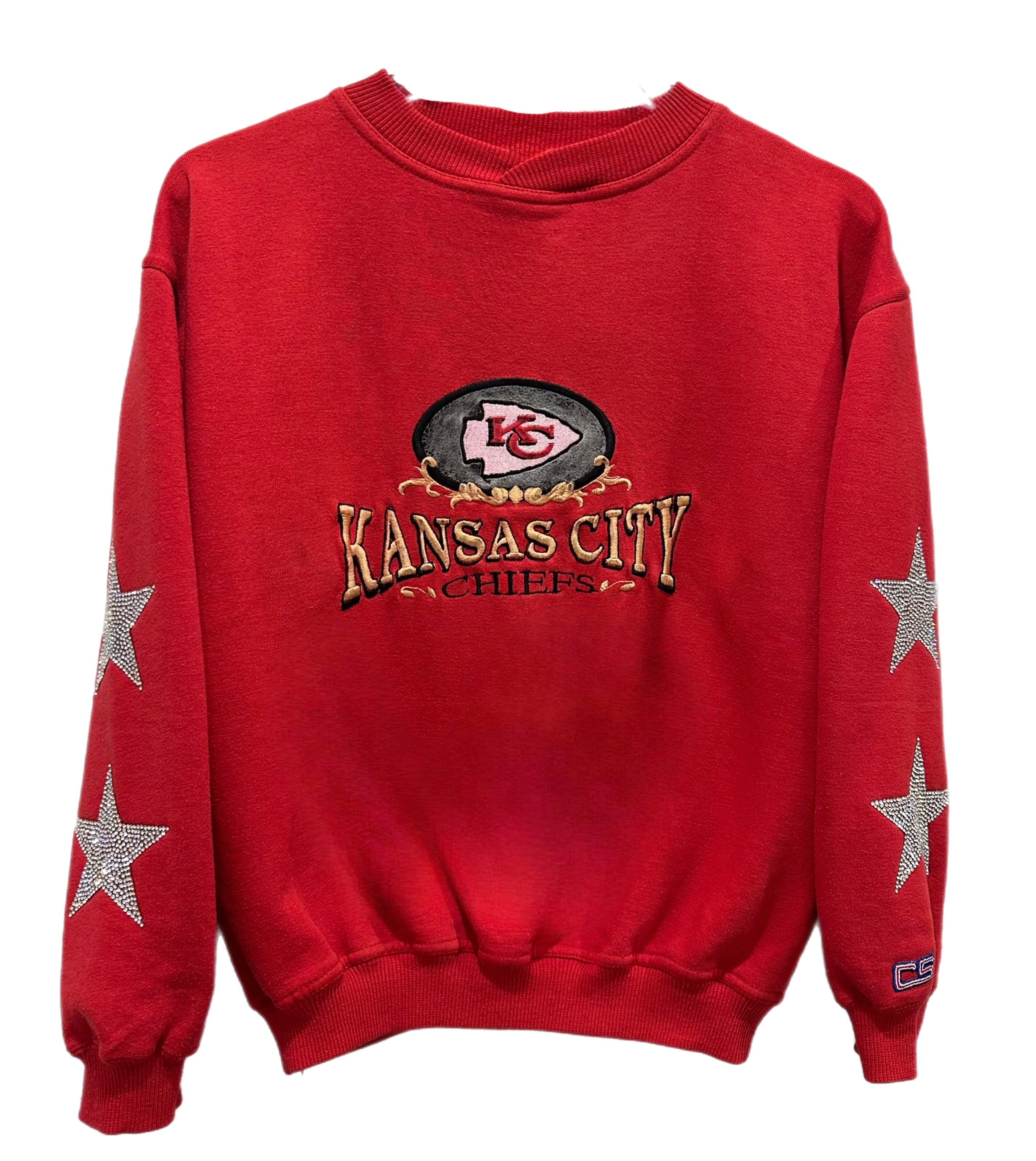 Kansas City Chiefs, Football One of a KIND Vintage Sweatshirt with Crystal Star Design