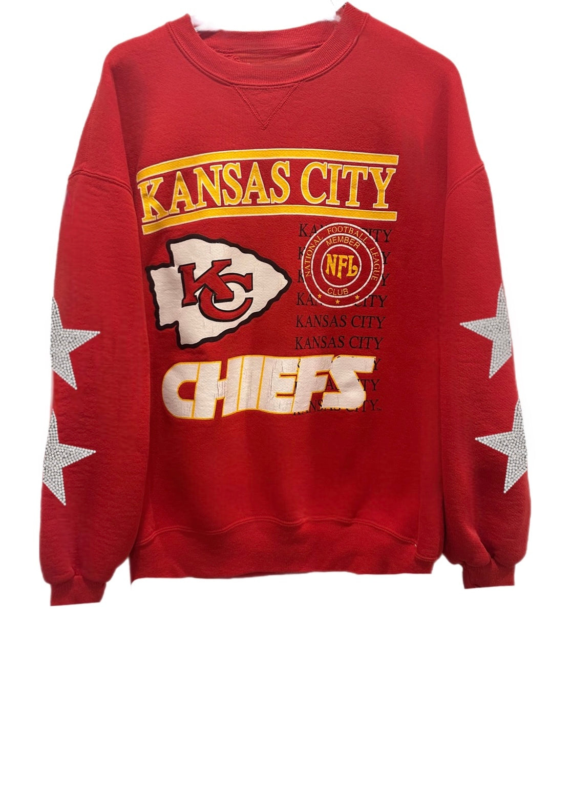 Kansas City Chiefs, Football One of a KIND Vintage Sweatshirt with Crystal Star Design