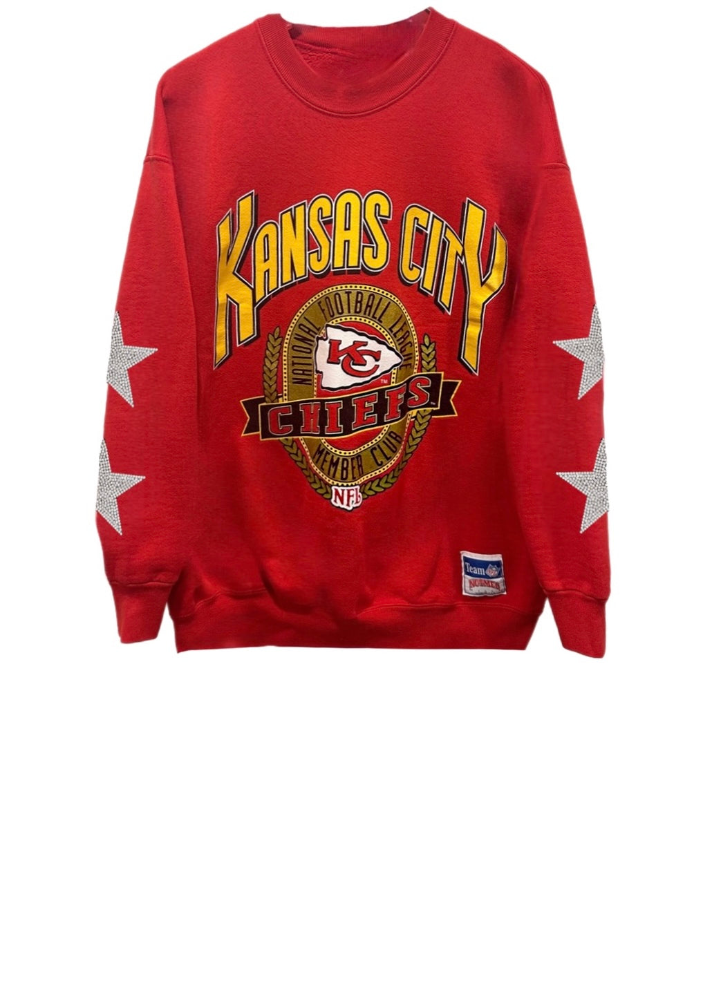 Kansas City Chiefs, Football One of a KIND Vintage Sweatshirt with Crystal Star Design
