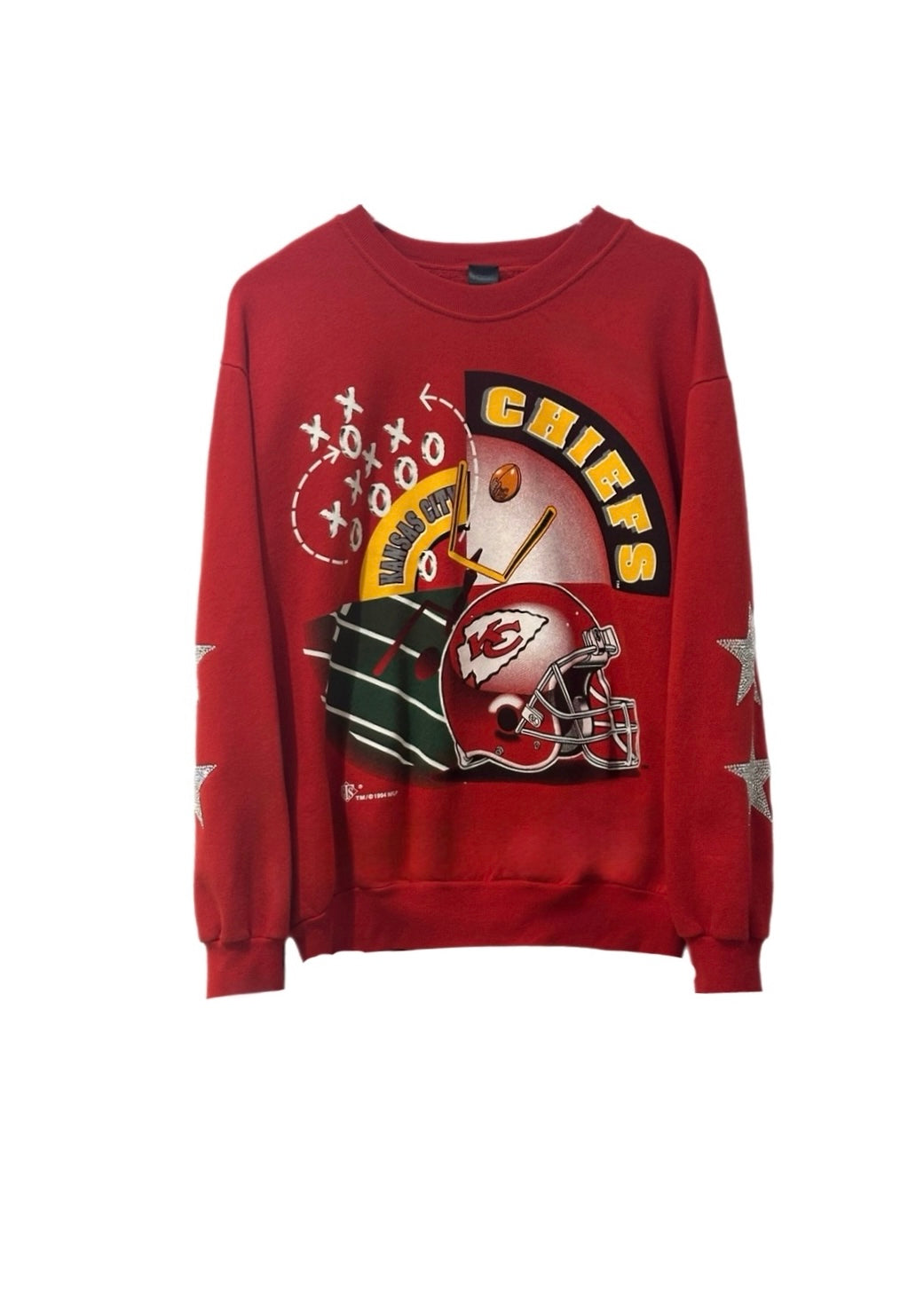 Kansas City Chiefs, Football One of a KIND Vintage  Sweatshirt with Crystal Star Design, Custom Crystal Number