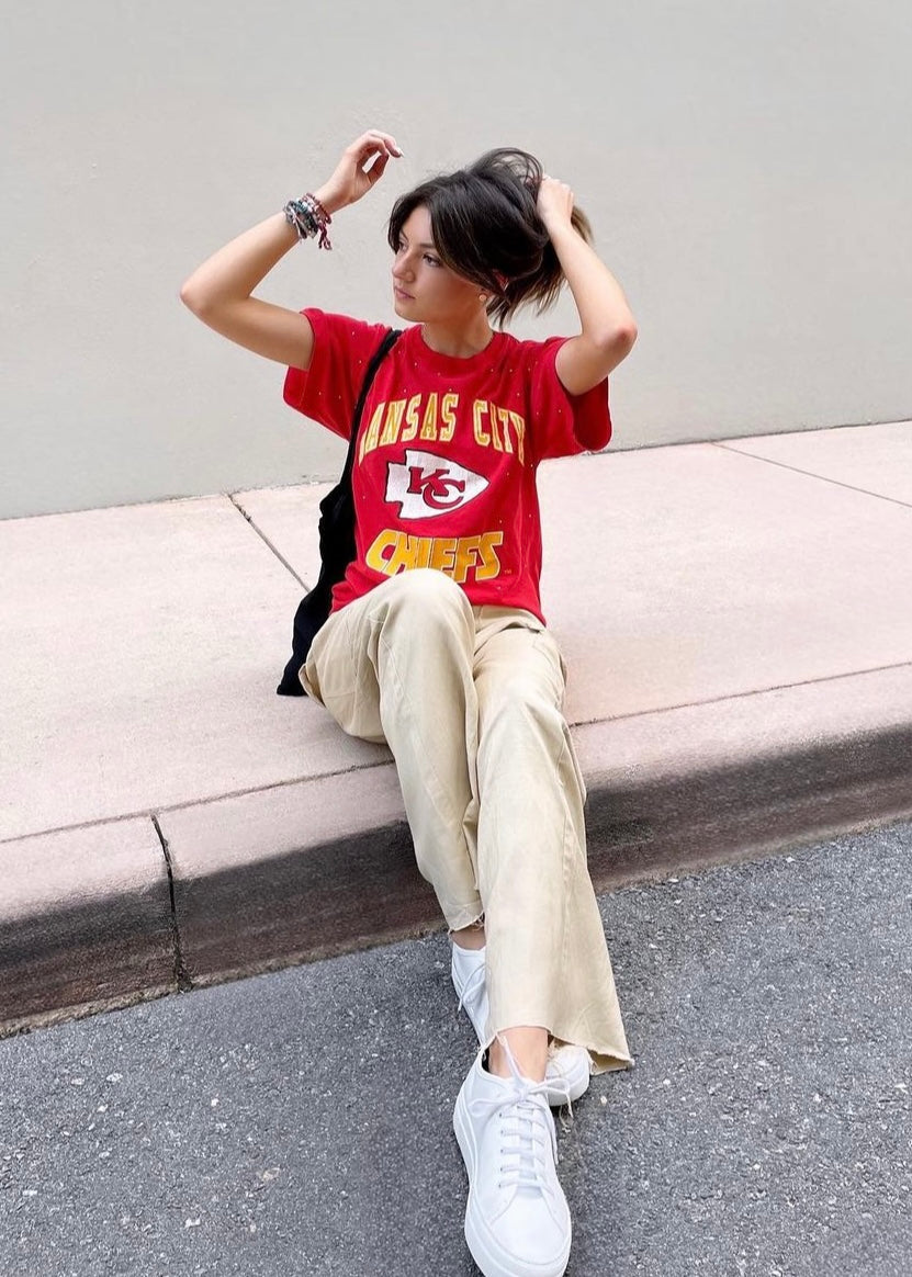 Kansas City Chiefs, Football One of a KIND Vintage Tee with Overall Crystal Design