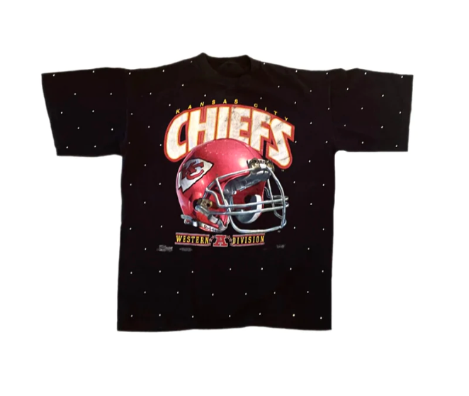 Kansas City Chiefs, Football One of a KIND Vintage Tee with Overall Crystal Design.