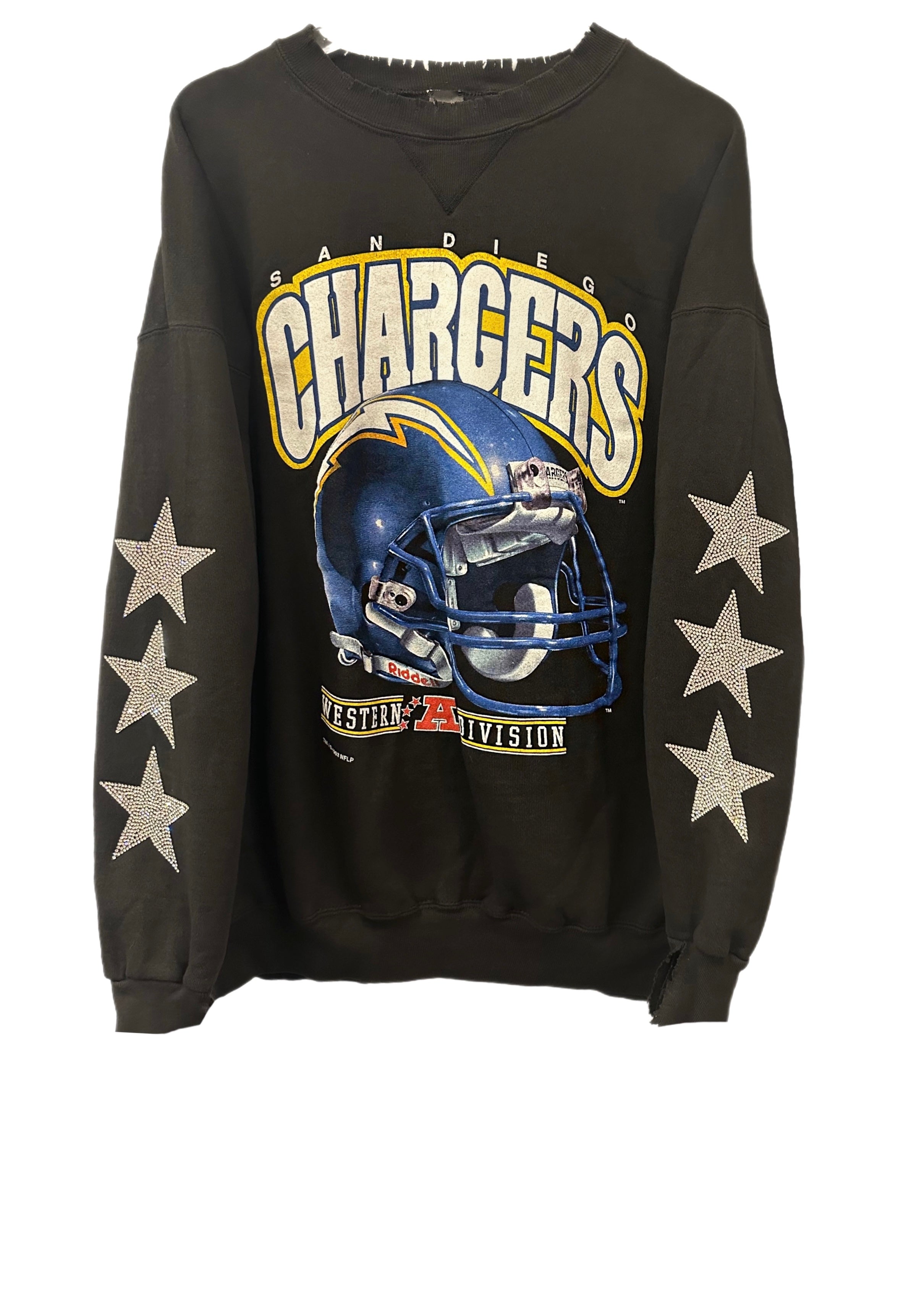 LA Chargers, Football One of a KIND Vintage Sweatshirt with Three Crystal Star Design.