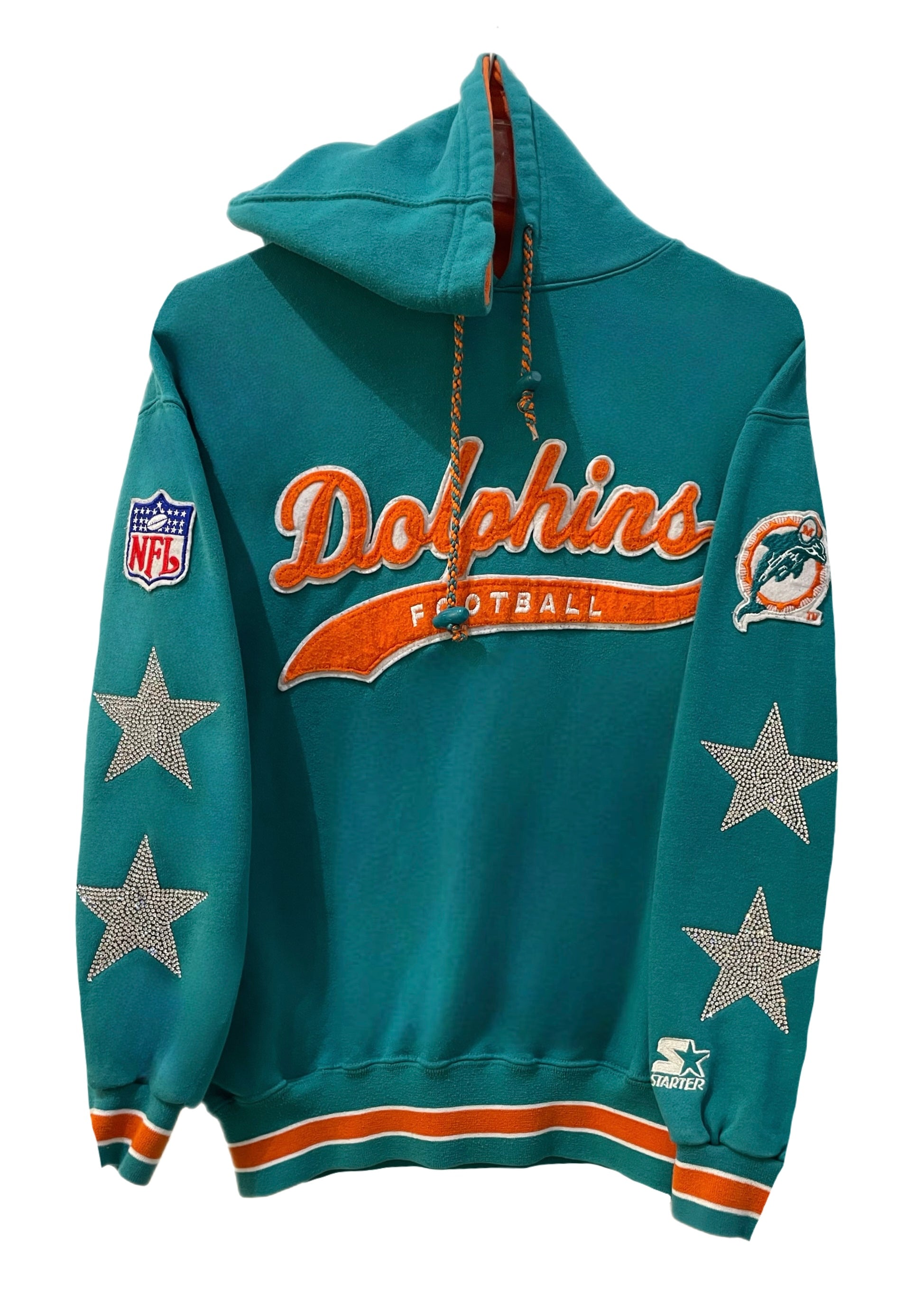 Miami Dolphins, Football One of a KIND Vintage Hoodie with Crystal Star Design