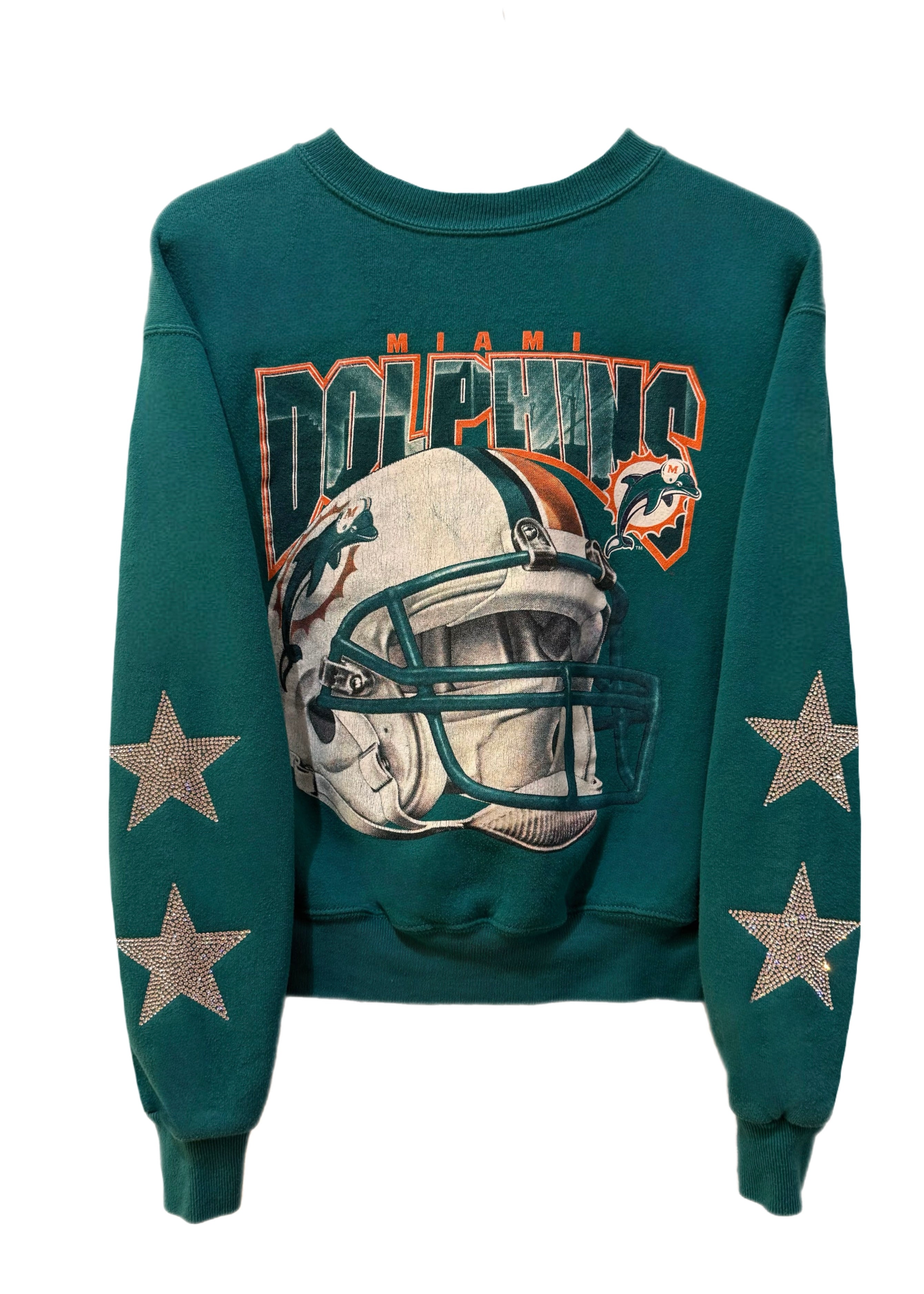 Miami Dolphins, Football One of a KIND Vintage Sweatshirt with Crystal Star Design