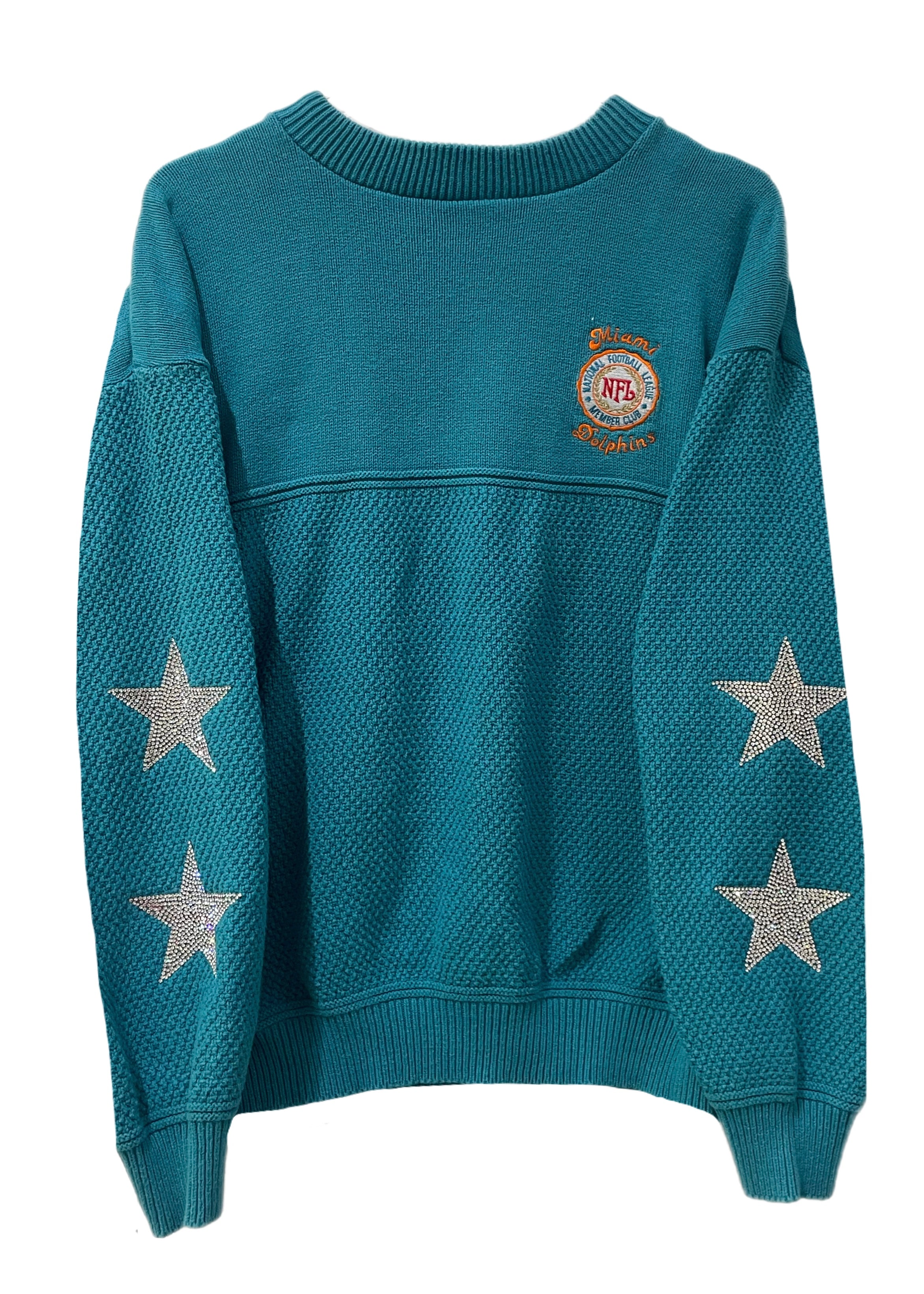 Miami Dolphins, Football One of a KIND Vintage Knit Sweatshirt with Crystal Star Design