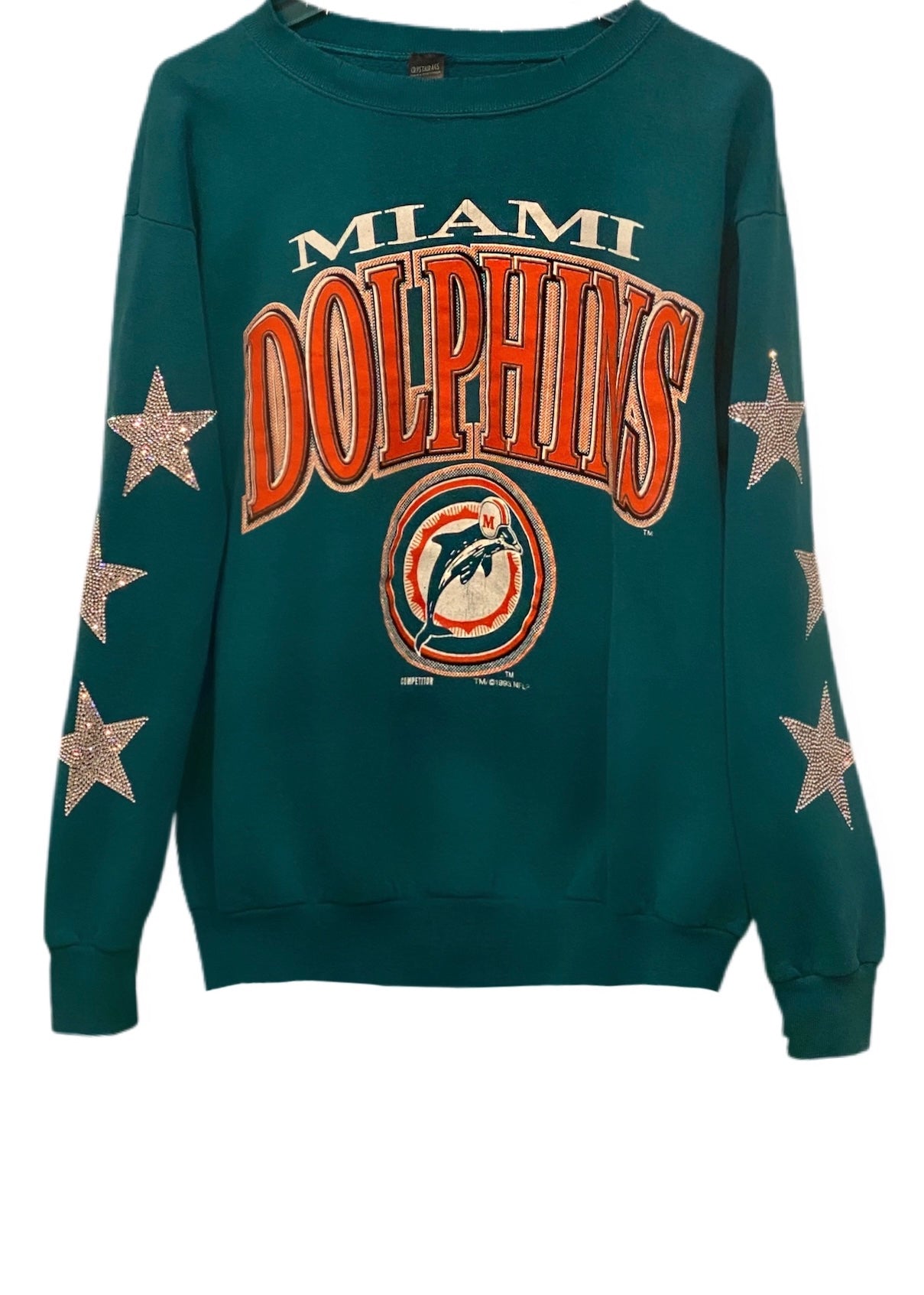 Miami Dolphins, Football One of a KIND Vintage Sweatshirt with Three Crystal Star Design