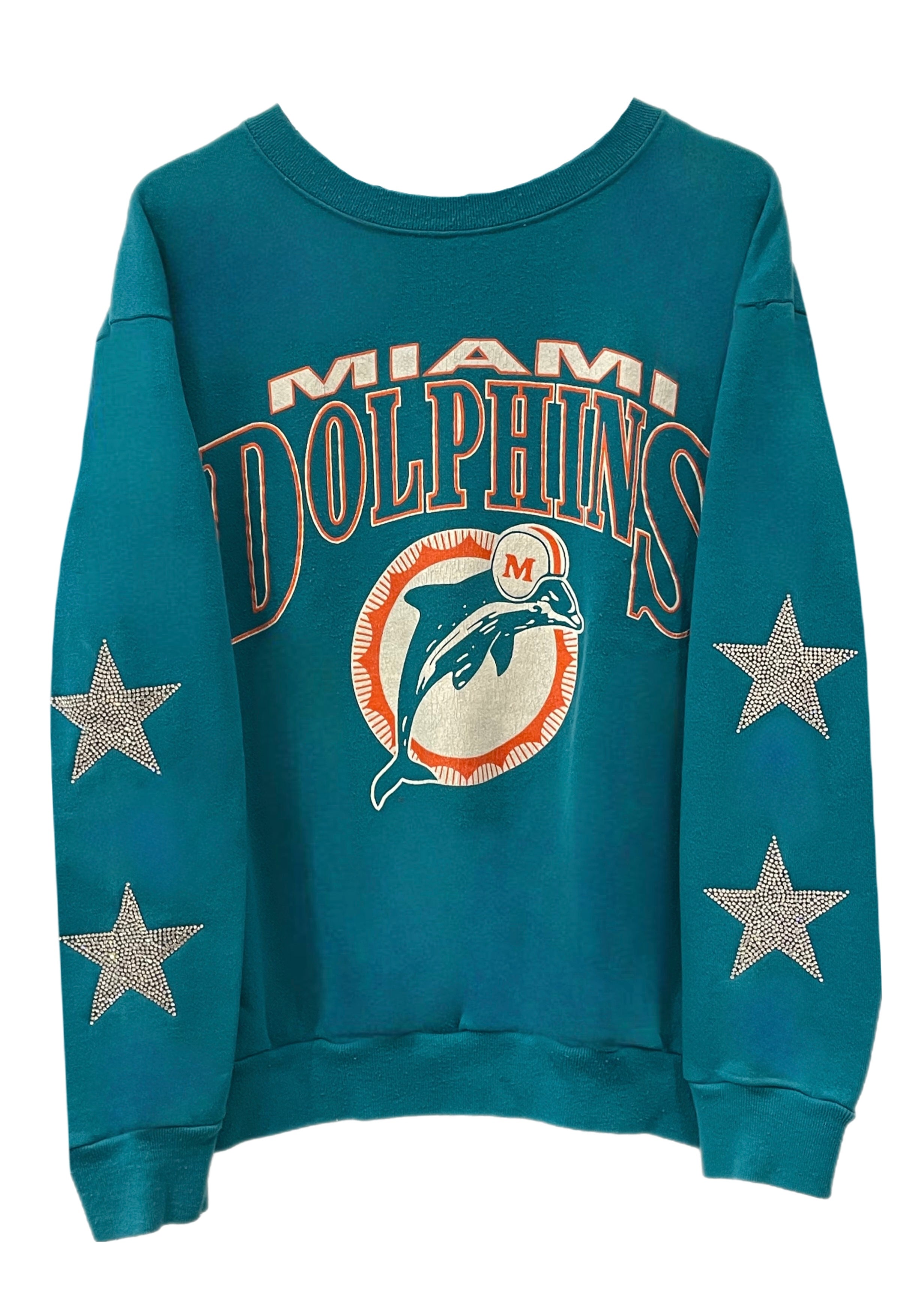 Miami Dolphins, Football One of a KIND Vintage Sweatshirt with Crystal Star Design