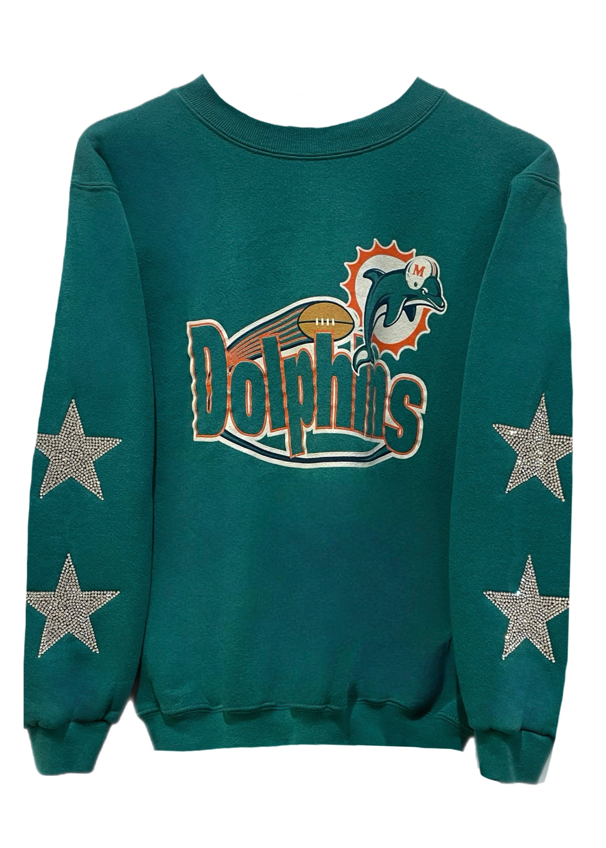 Miami Dolphins, Football One of a KIND Vintage Sweatshirt with Crystal Star Design