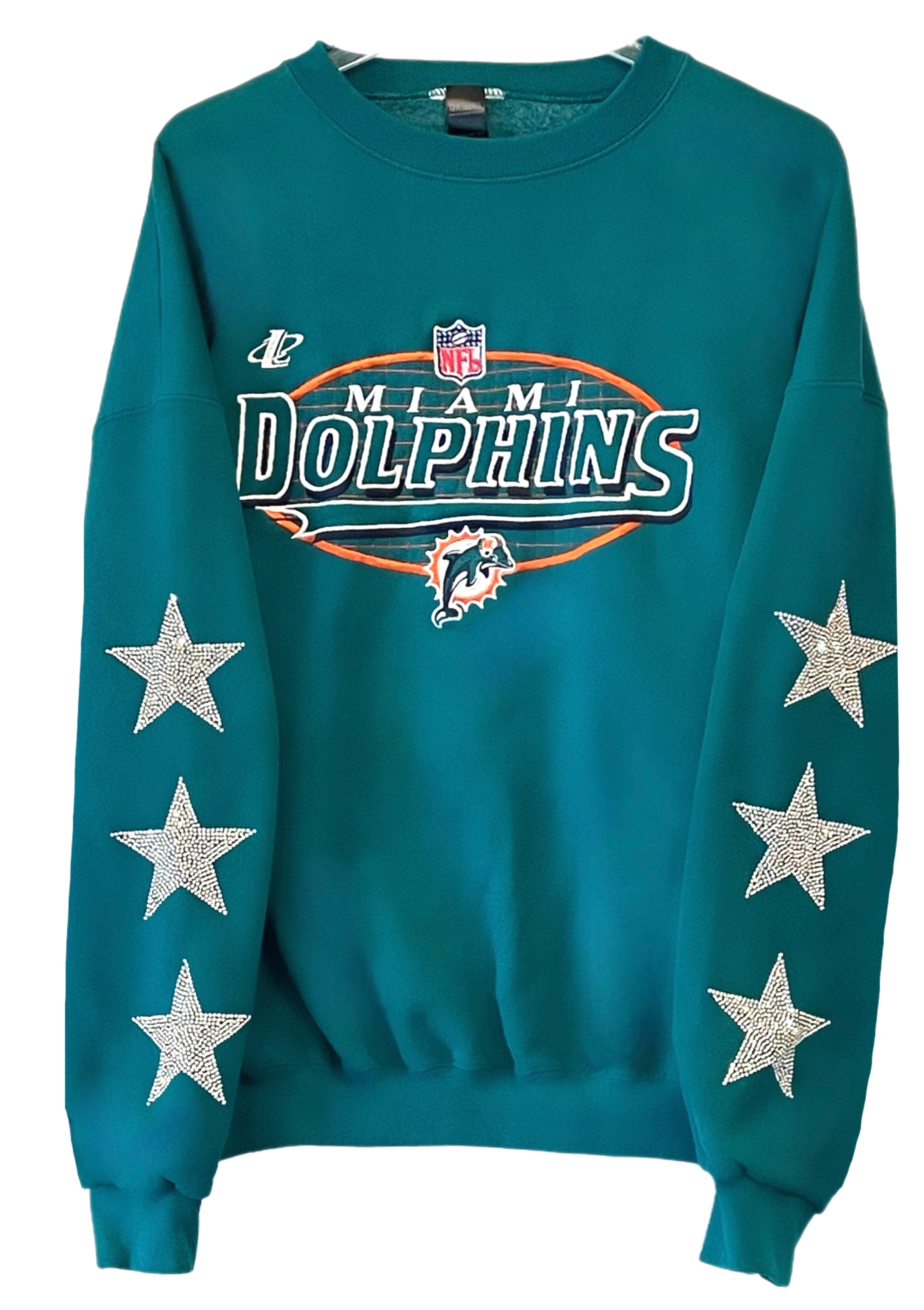 Miami Dolphins, Football One of a KIND Vintage Sweatshirt with Three Crystal Star Design