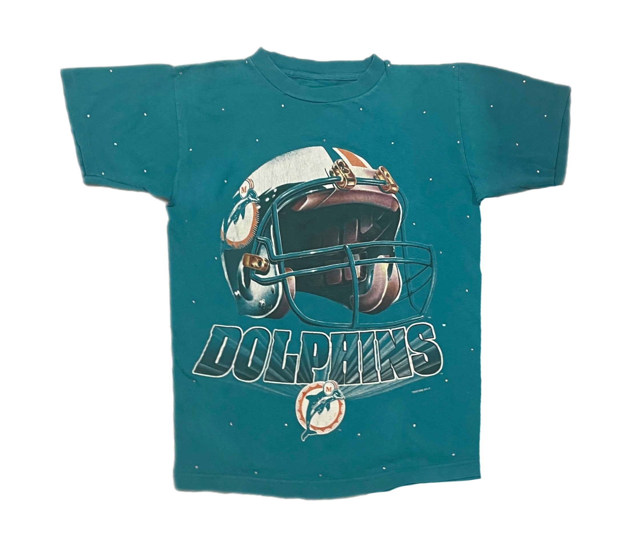 Miami Dolphins, Football One of a KIND Vintage Tee with Overall Crystal Design.