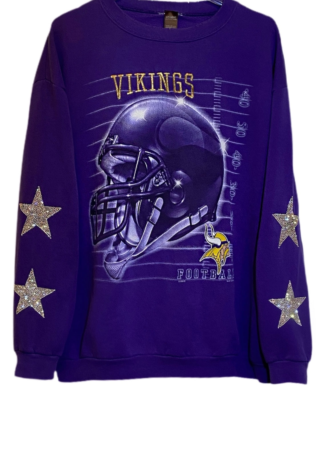 Minnesota Vikings, Football One of a KIND Vintage Sweatshirt with Crystal Star Design