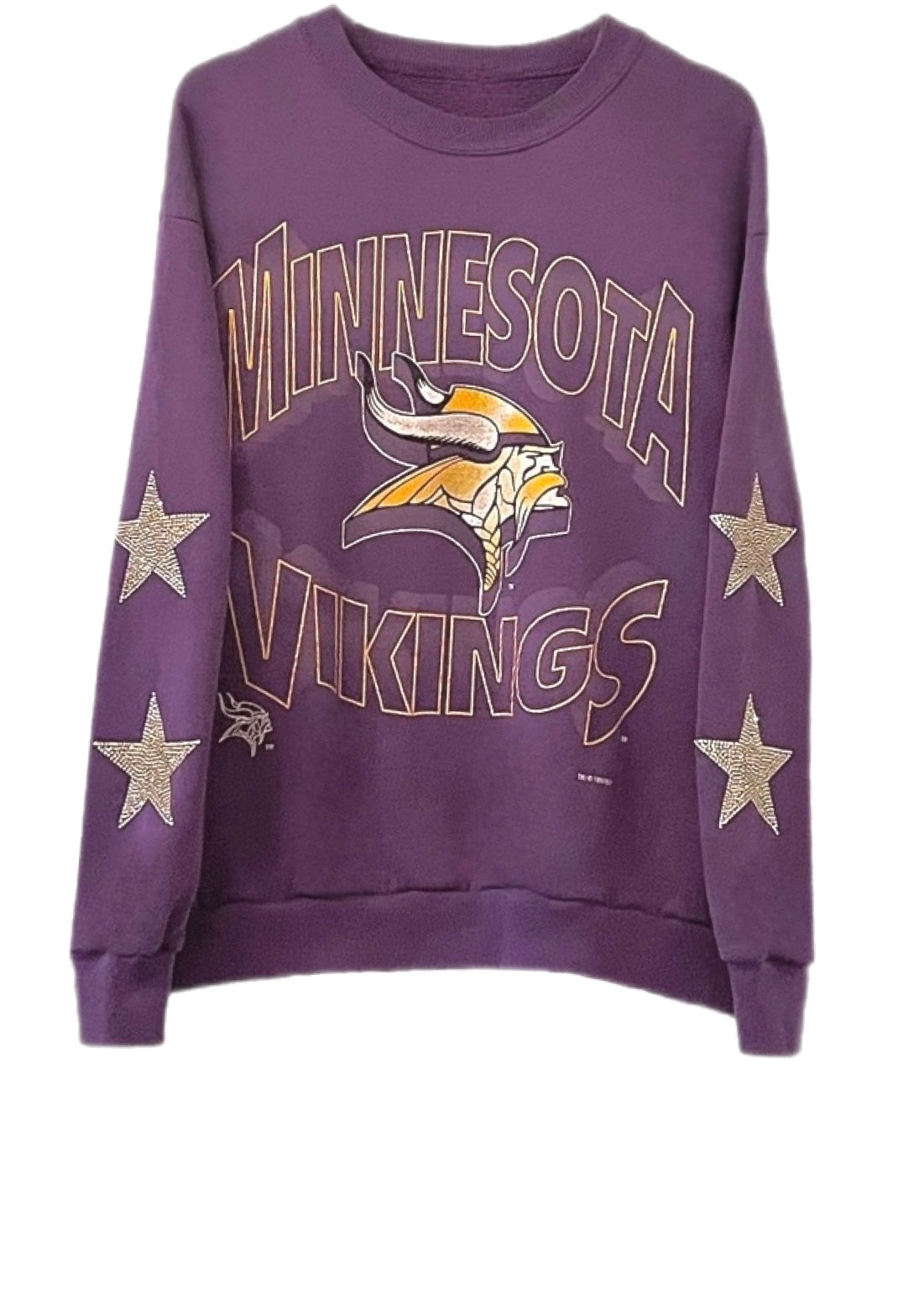 Minnesota Vikings, Football One of a KIND Vintage Sweatshirt with Crystal Star Design.