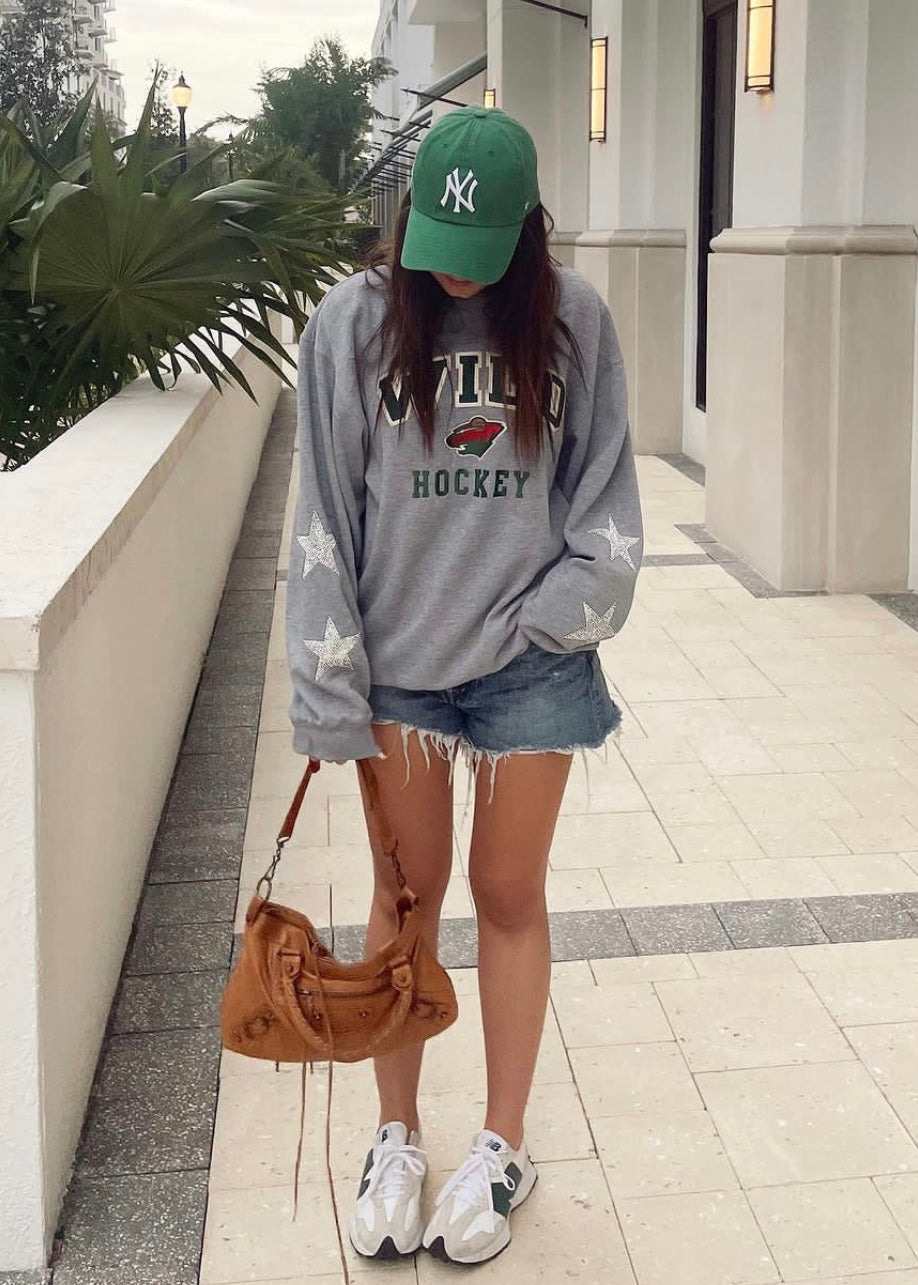 Minnesota Wild, Hockey One of a KIND Vintage Sweatshirt with Crystal Star Design