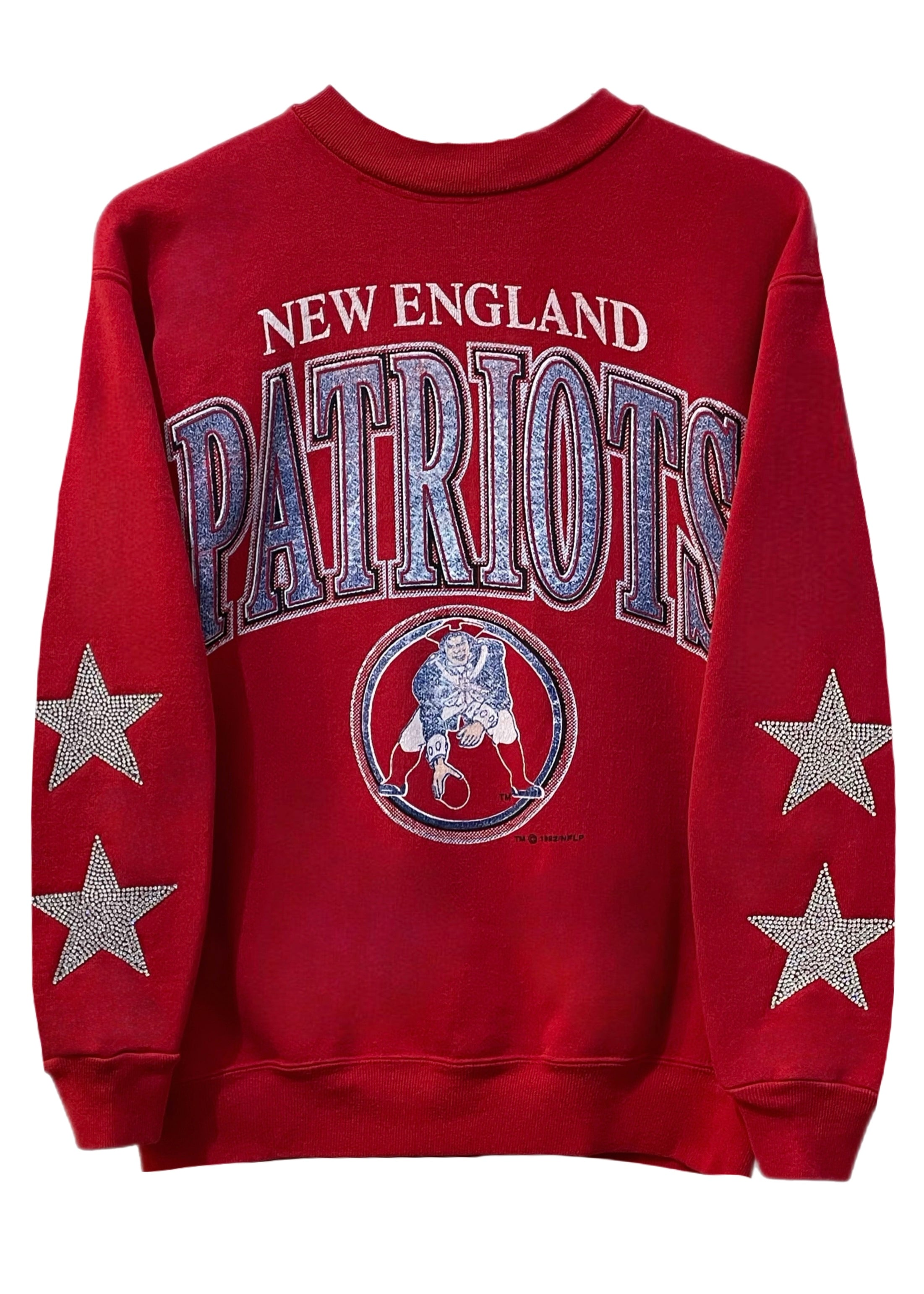 New England Patriots, Football One of a KIND Vintage Sweatshirt with Crystal Star Design