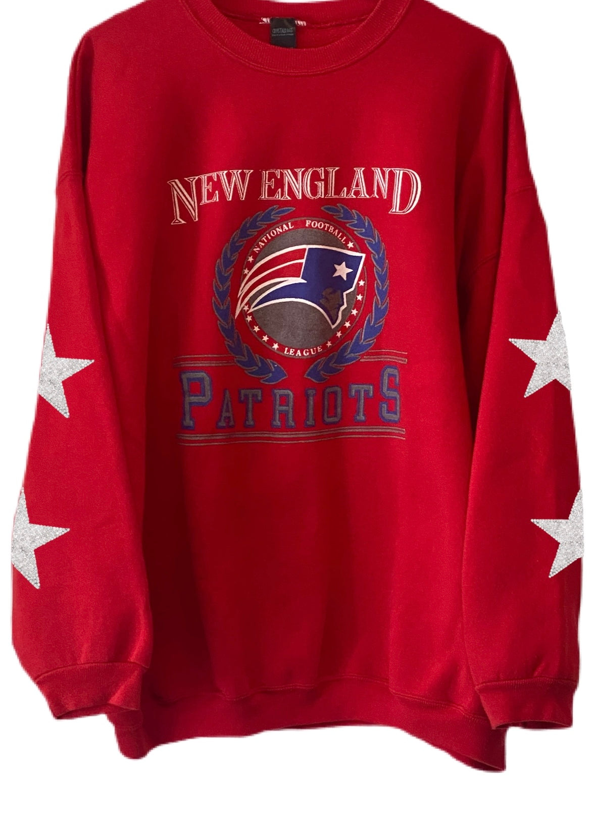 New England Patriots, Football One of a KIND Vintage Sweatshirt with Crystal Star Design