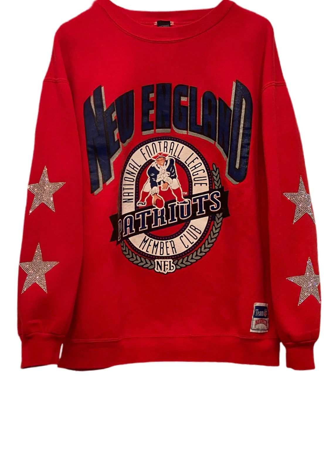 New England Patriots, Football One of a KIND Vintage Sweatshirt with Crystal Star Design