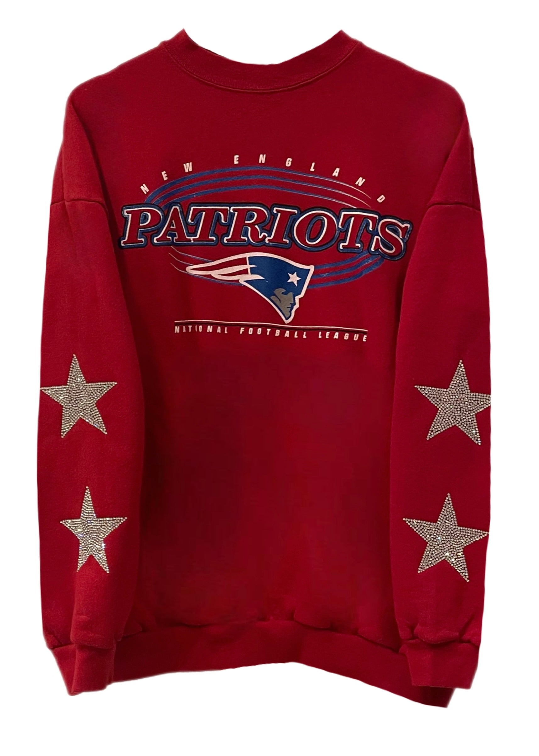 New England Patriots, Football One of a KIND Vintage Sweatshirt with Crystal Star Design
