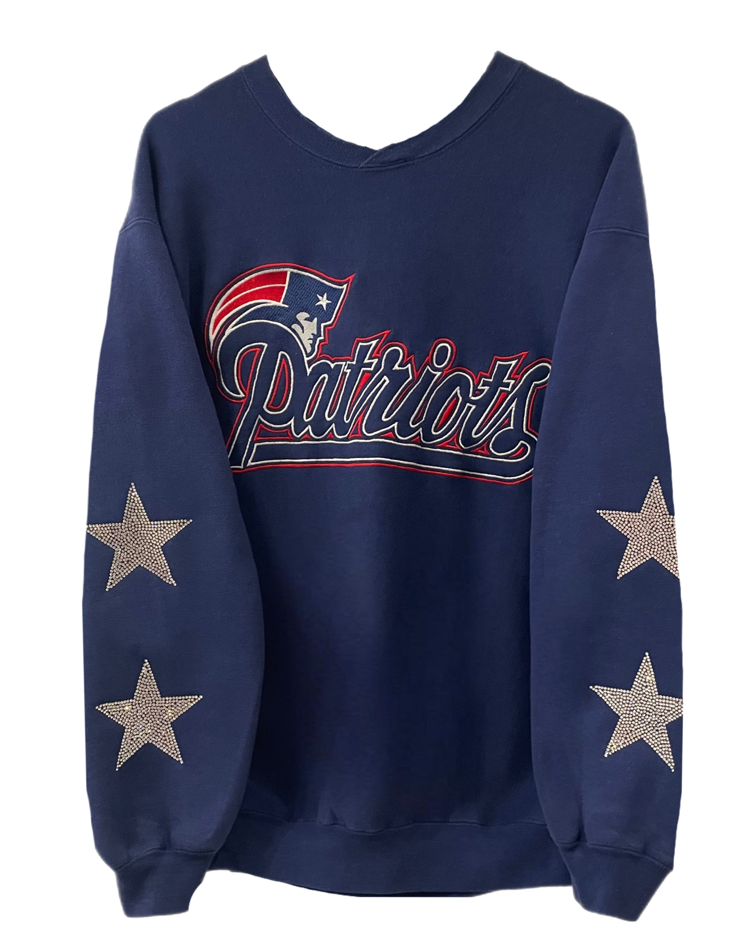New England Patriots, Football One of a KIND Vintage Sweatshirt with Crystal Star Design