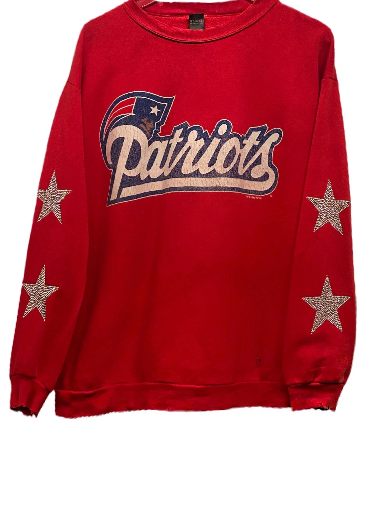 New England Patriots, Football One of a KIND Vintage Sweatshirt with Crystal Star Design
