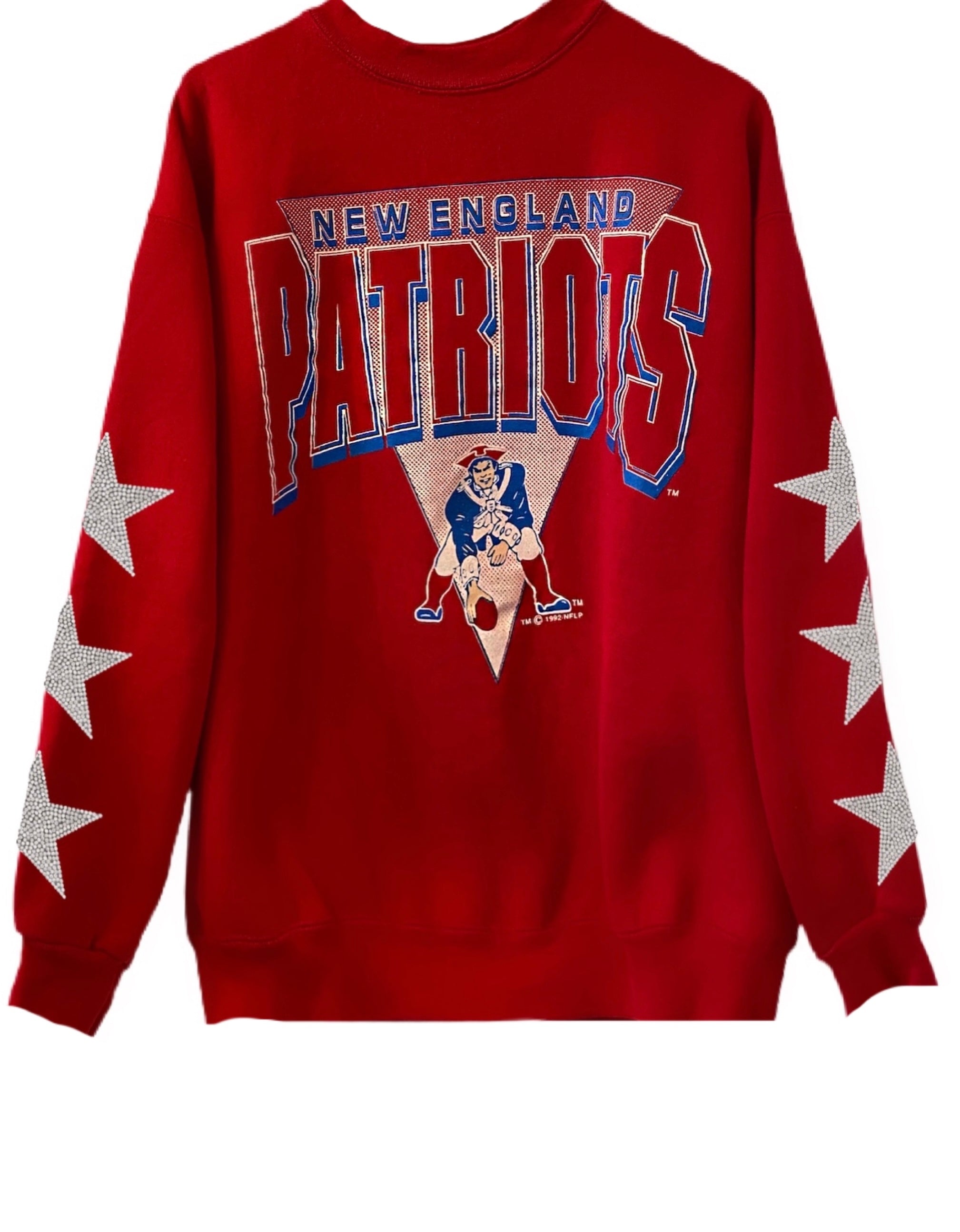 New England Patriots, Football One of a KIND Vintage Sweatshirt with Three Crystal Star Design with Custom Crystal Name
