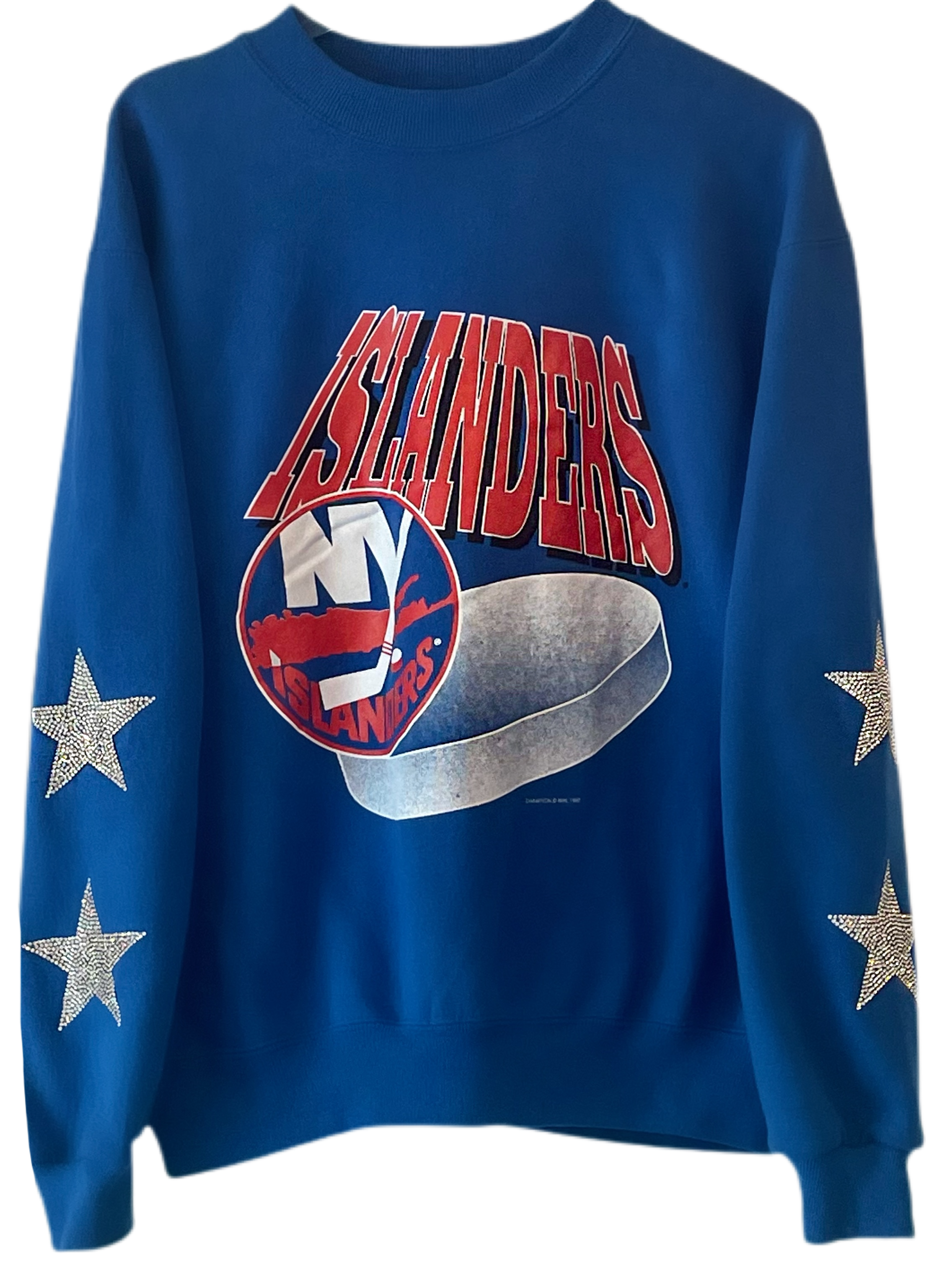 NY Islanders, Hockey One of a KIND Vintage Sweatshirt with Crystal Star Design