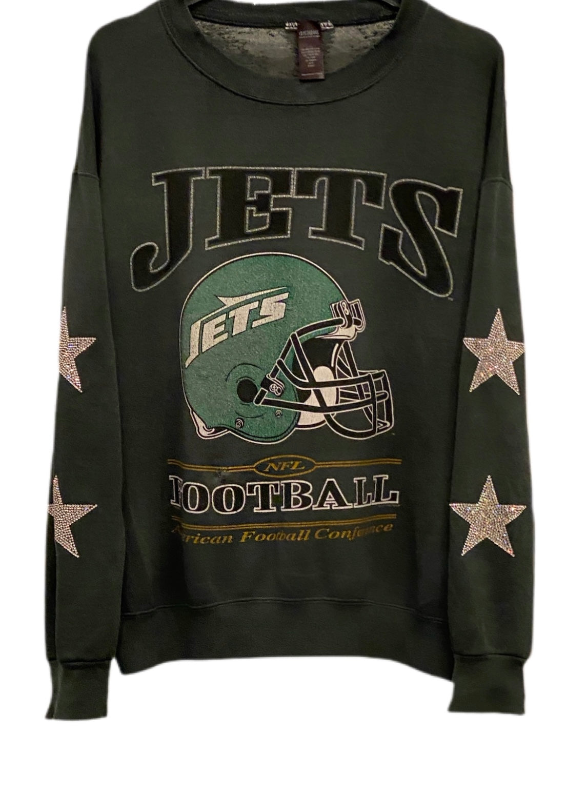 NY Jets, Football One of a KIND Vintage Sweatshirt with Crystal Star Design