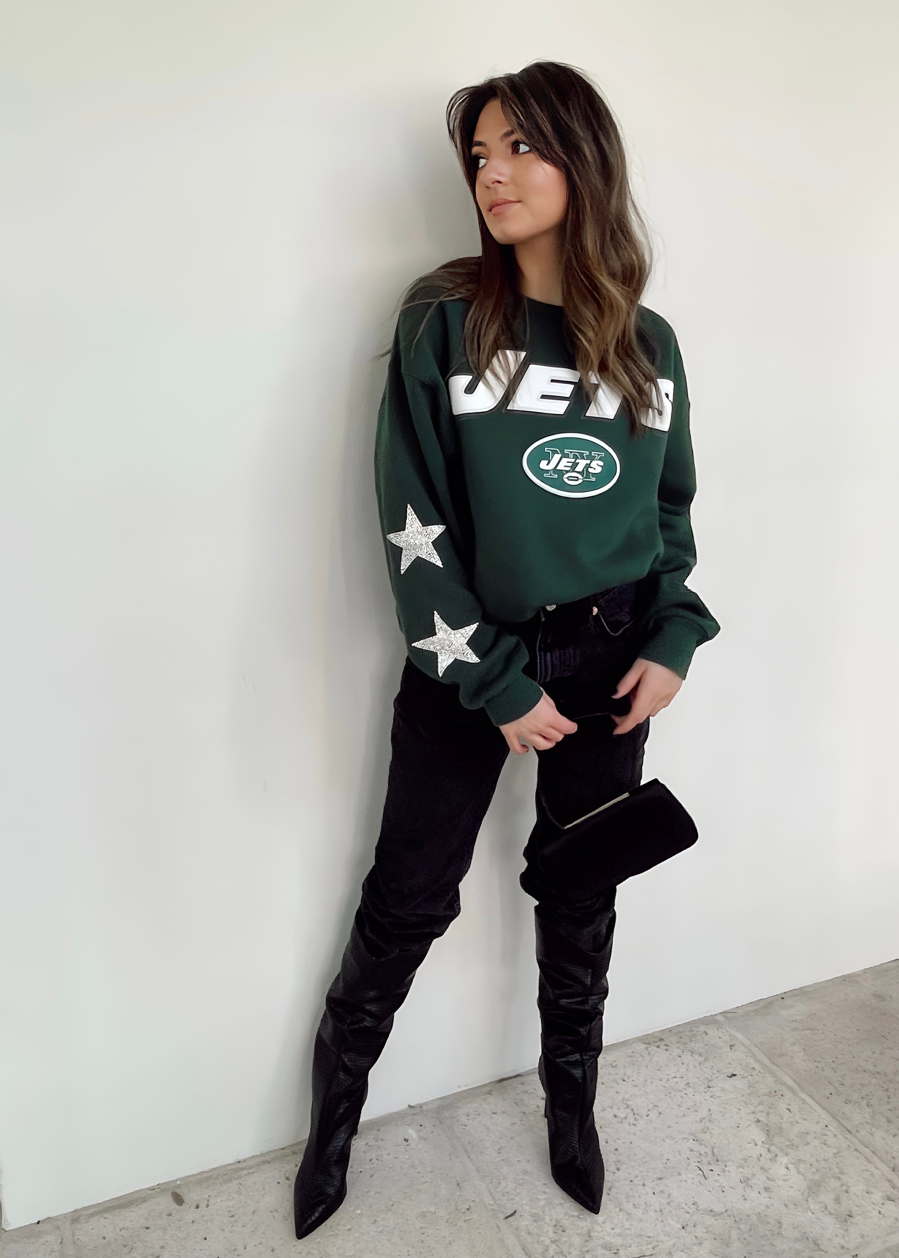 NY Jets, Football One of a KIND Vintage Sweatshirt with Crystal Star Design
